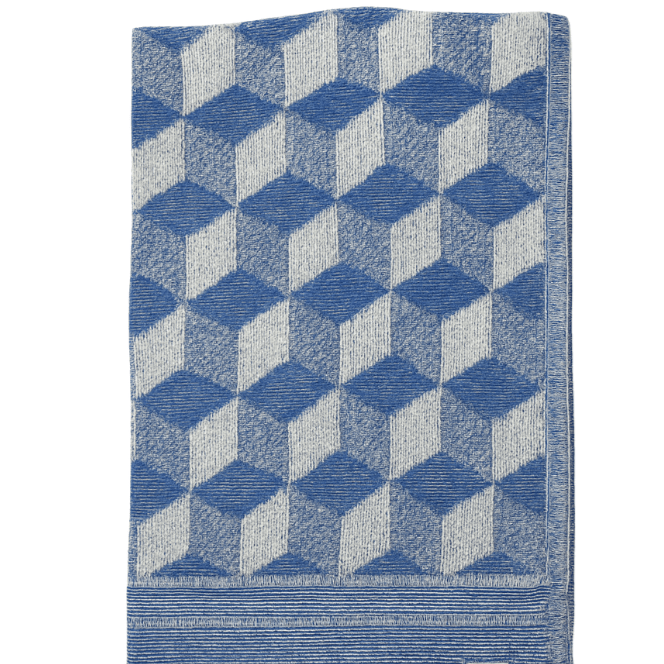 Wrap yourself in comfort and modern design with the Cubes Texture Throw in Royal by Happy Habitat. Featuring a bold geometric pattern in royal blue and natural tones, this throw creates a striking three-dimensional cube effect that adds texture and visual interest to any space.