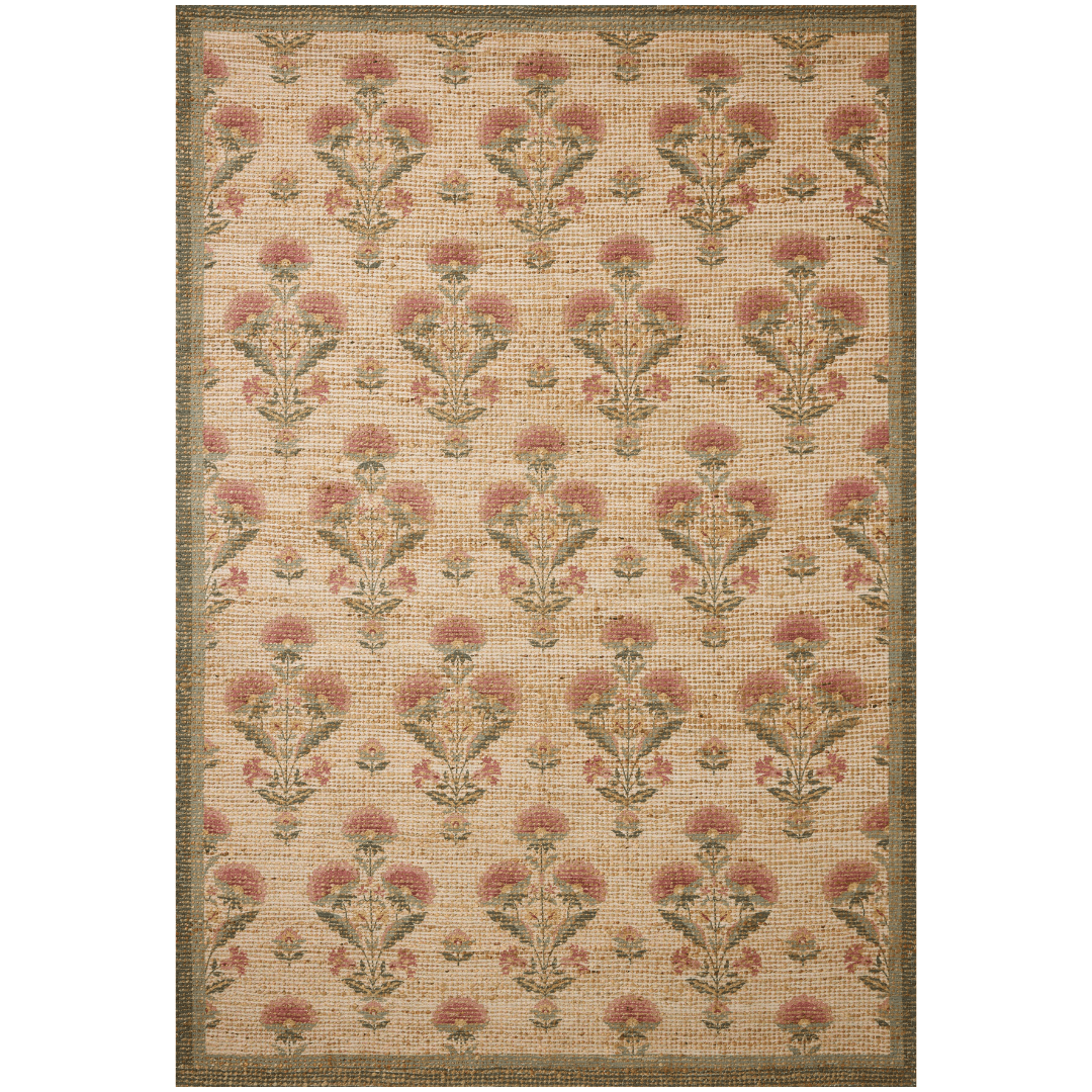 Inspired by the classic English cottage aesthetic, the Rue Collection by Chris Loves Julia x Loloi is a handwoven area rug with a lovely block-print floral design on a blended pile of jute, polyester, and cotton. The natural-toned palette is a perfect fit for living rooms, bedrooms, dining rooms, and more. Due to the jute fibers in its construction, some threads may naturally come loose; if that happens, simply trim the thread with scissors. This collection is handwoven in India and GoodWeave-certified, ensuring our commitment to ethical production and the support of weavers' communities.