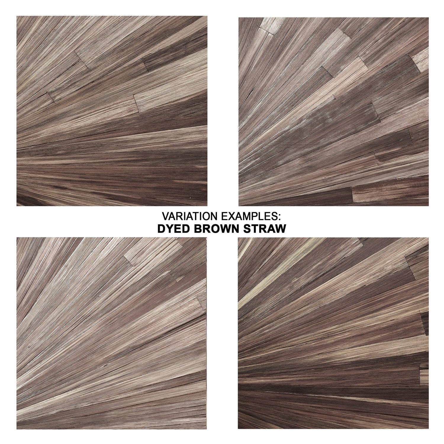 Dyed straw is expertly arranged into radiant starburst patterns to create the bright, bold base of this table lamp. A trapezoidal finial and antique brass hardware beautifully complement the richness of the marquetry straw base. The perfect counterpoint to all those lavish earth tones? A clean white linen slub shade.