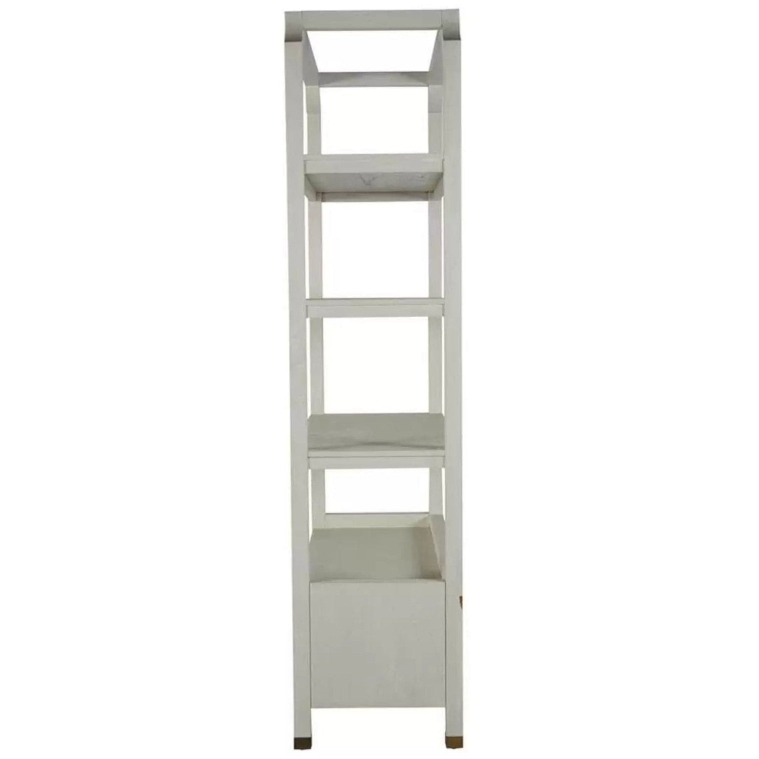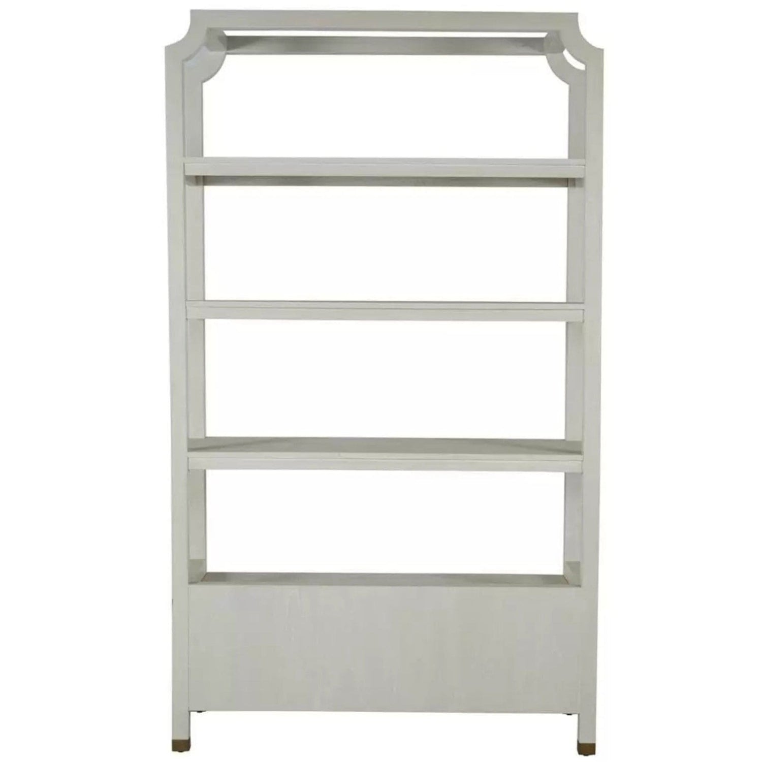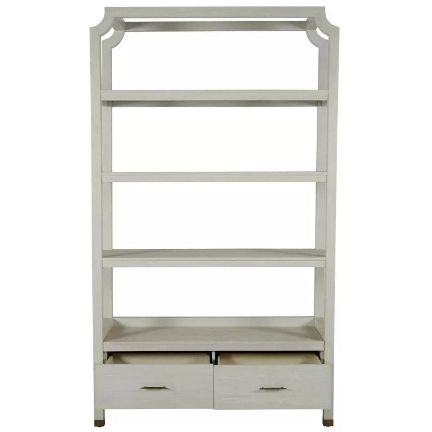 Introducing our Crest Bookcase crafted from durable mindi wood and finished in a beautiful cerused white This elegant bookcase combines form and function offering ample storage with its spacious shelves and two bottom drawers The open design and clean lines make it a versatile piece that complements any decor while the sophisticated finish adds a touch of refined elegance to your living space Perfect for showcasing your favorite books decorative items or cherished collections the Crest Bookcase is a stylish and practical addition to any room.