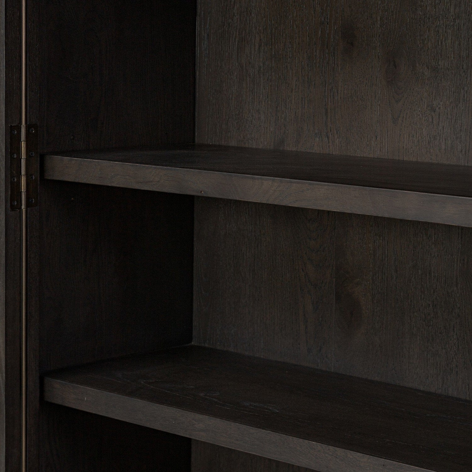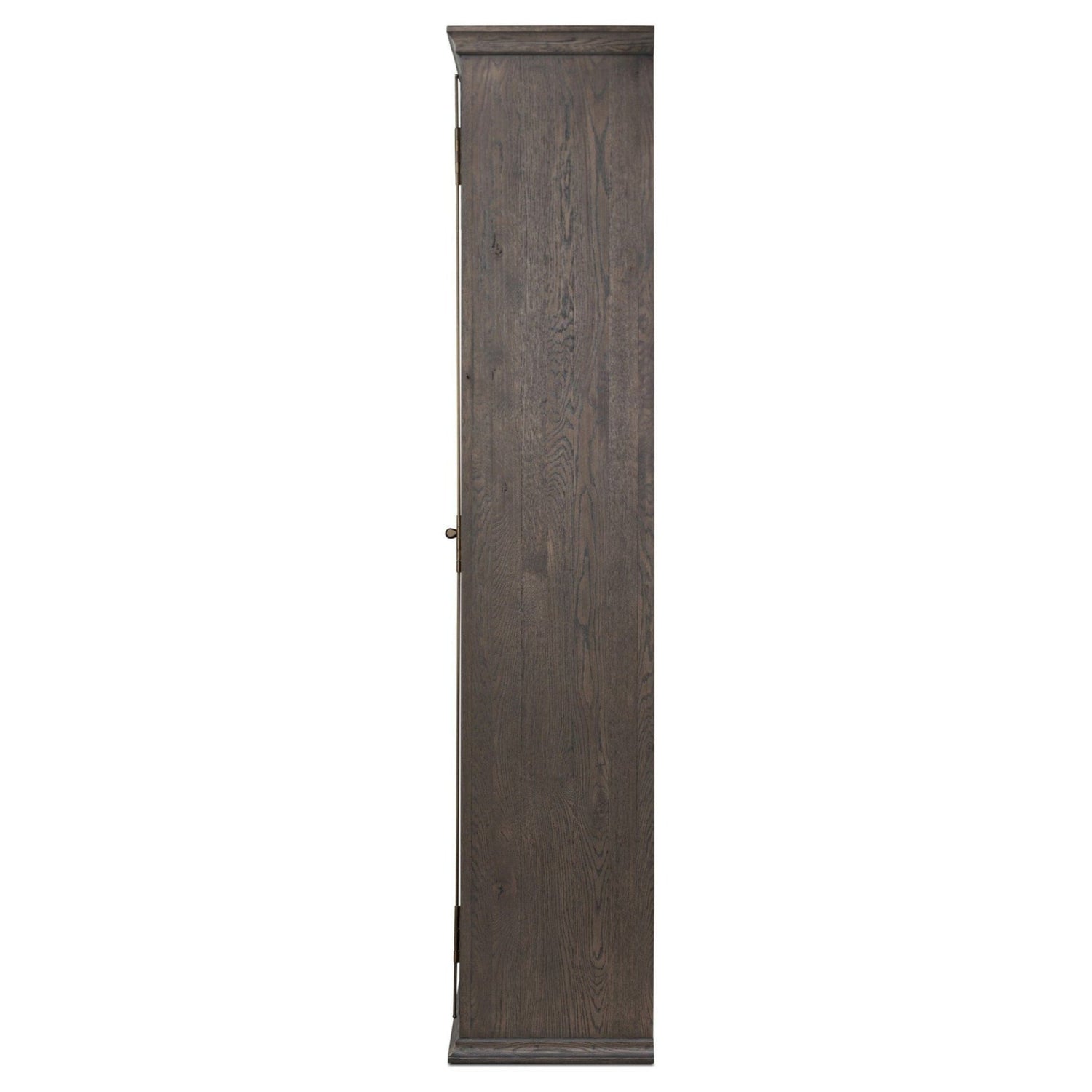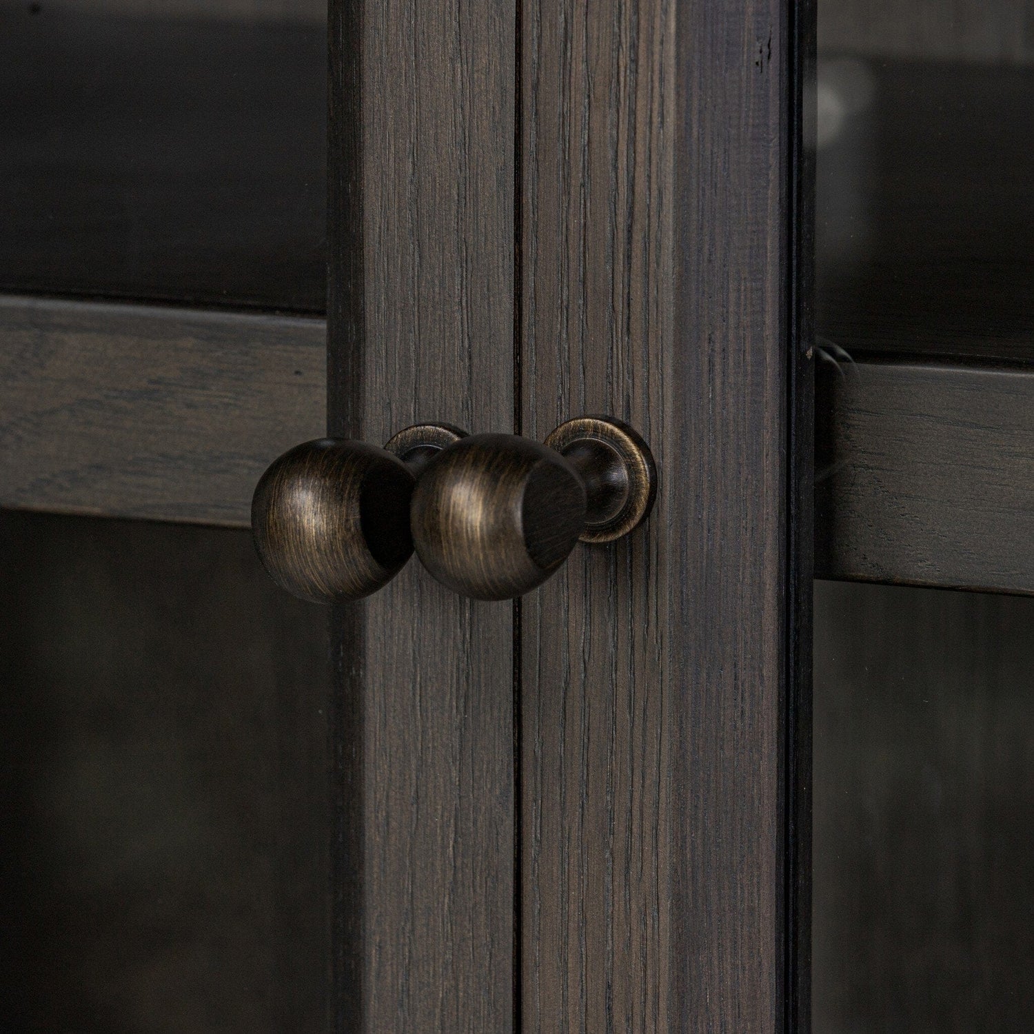 Work the timeless charm of a vintage find into your collection. Oak cabinetry—available in weathered or smoked black finishes—features softened mullions and rounded glass panels, with aged bronze barrel hinges and finial detailing. Generous storage and display options empower you to create a space that tells your story.