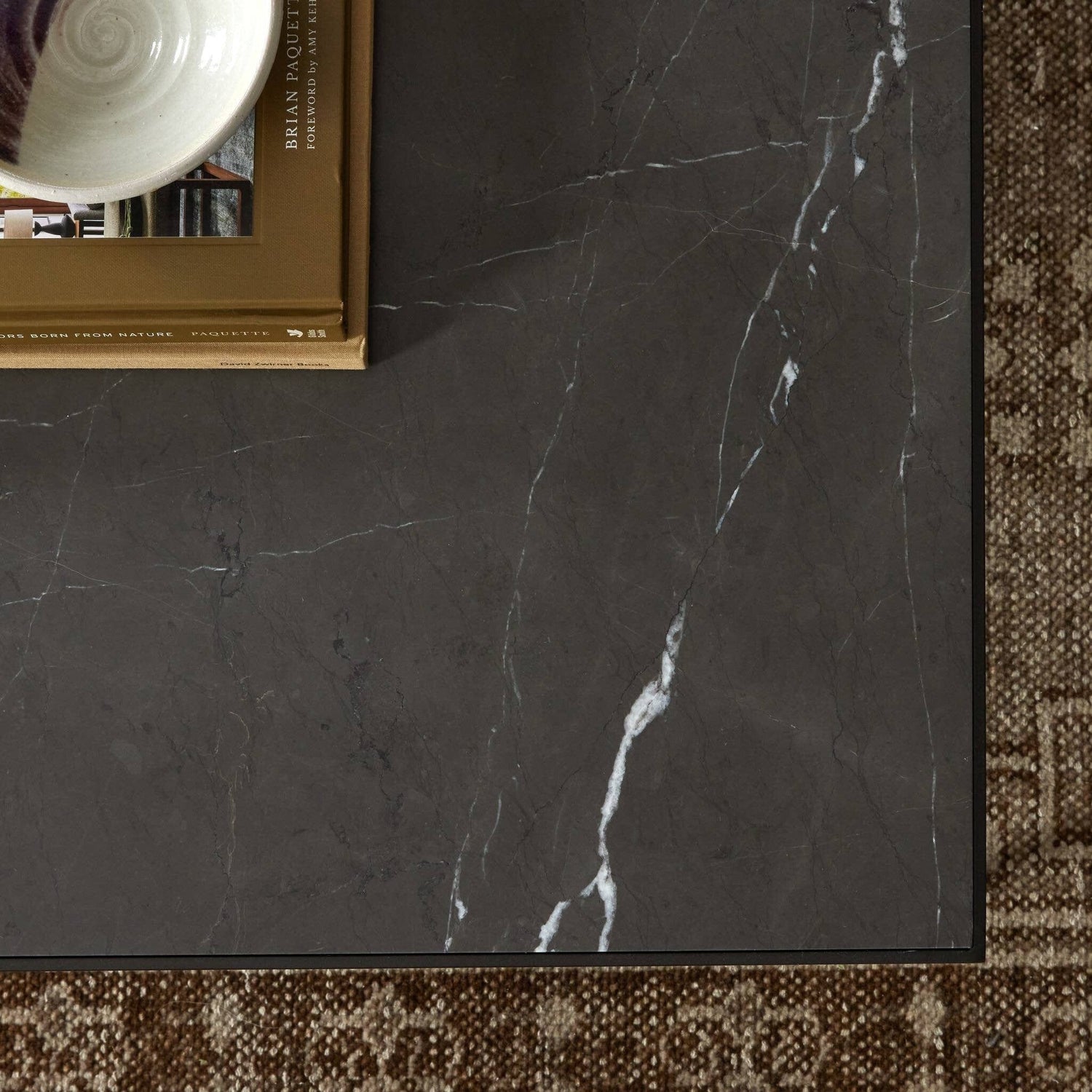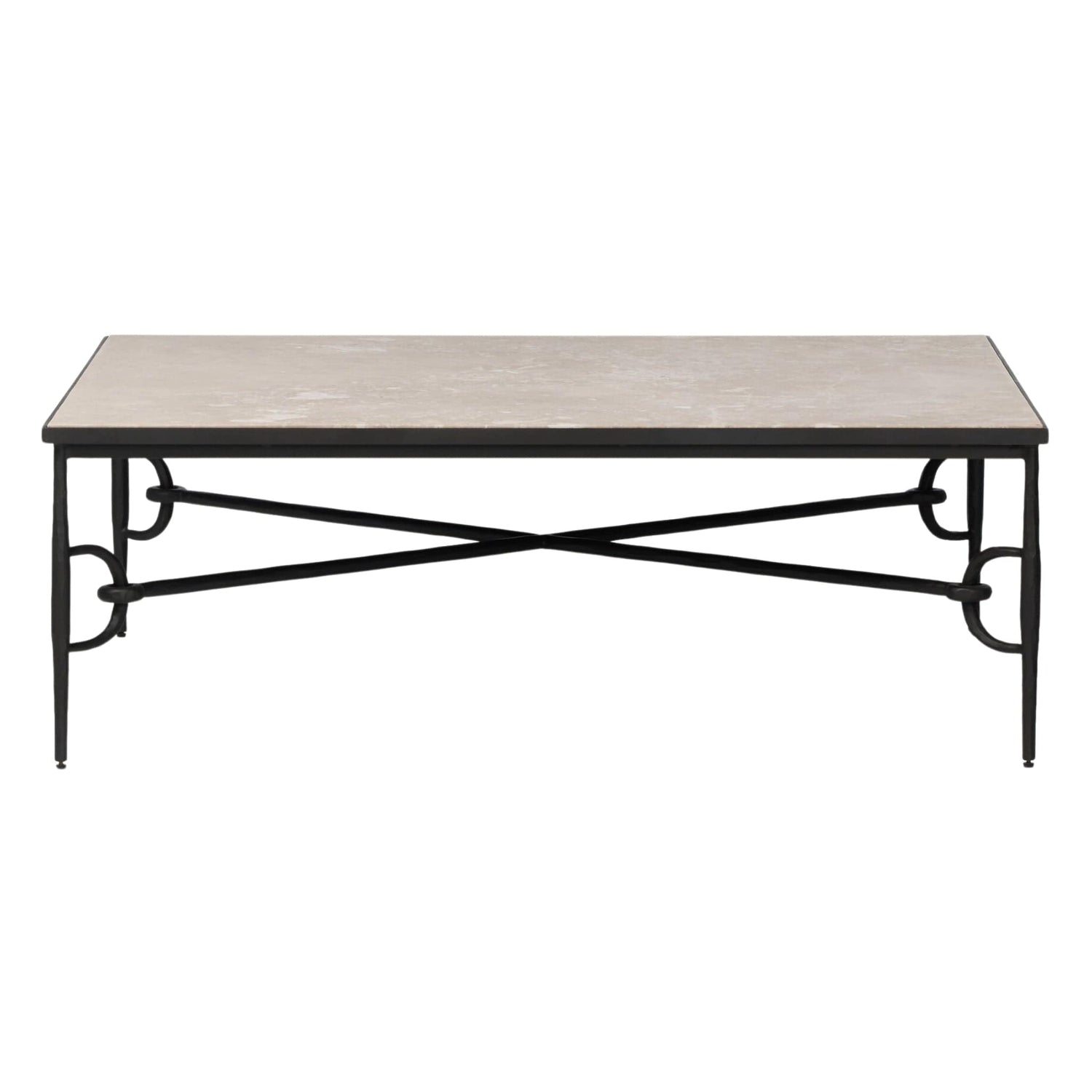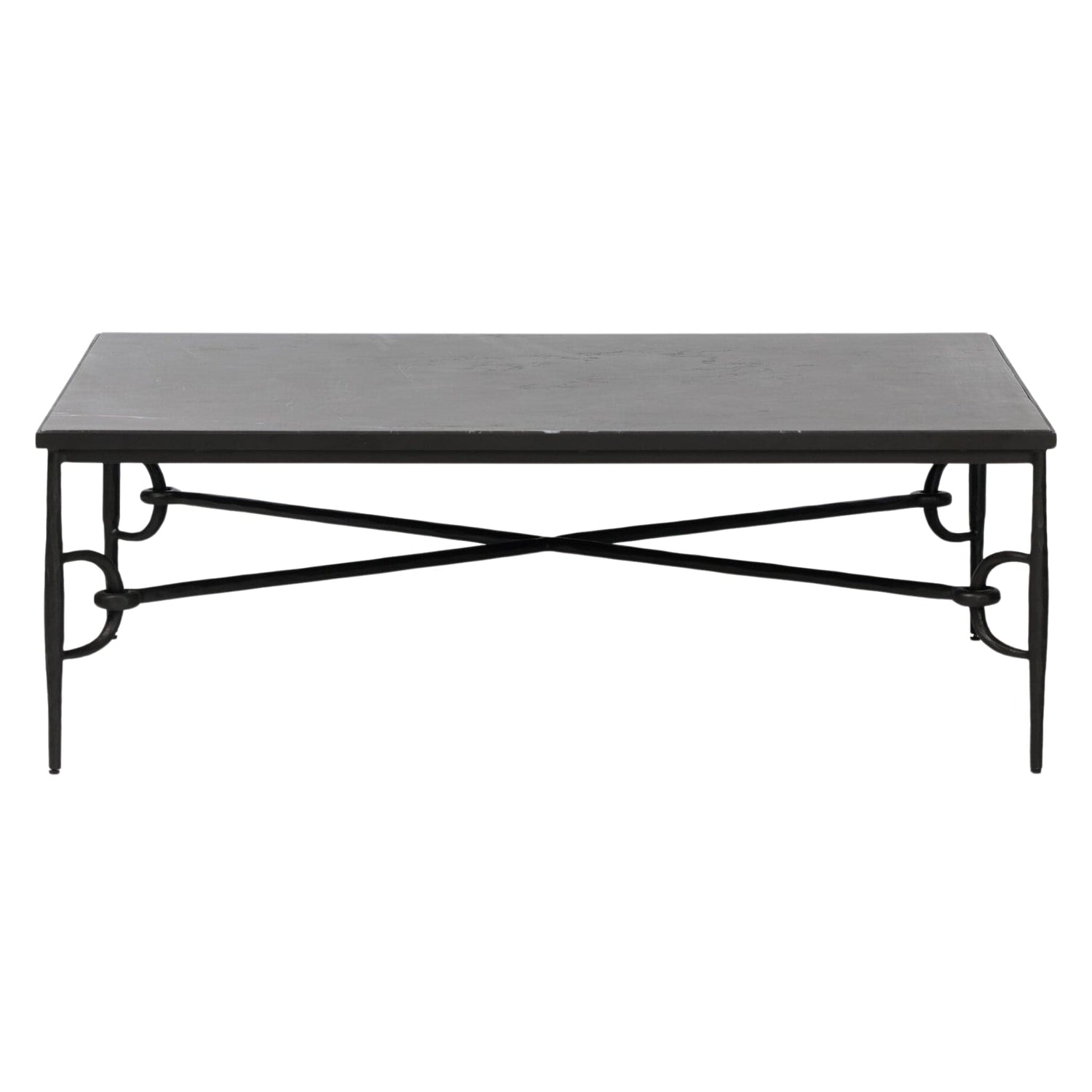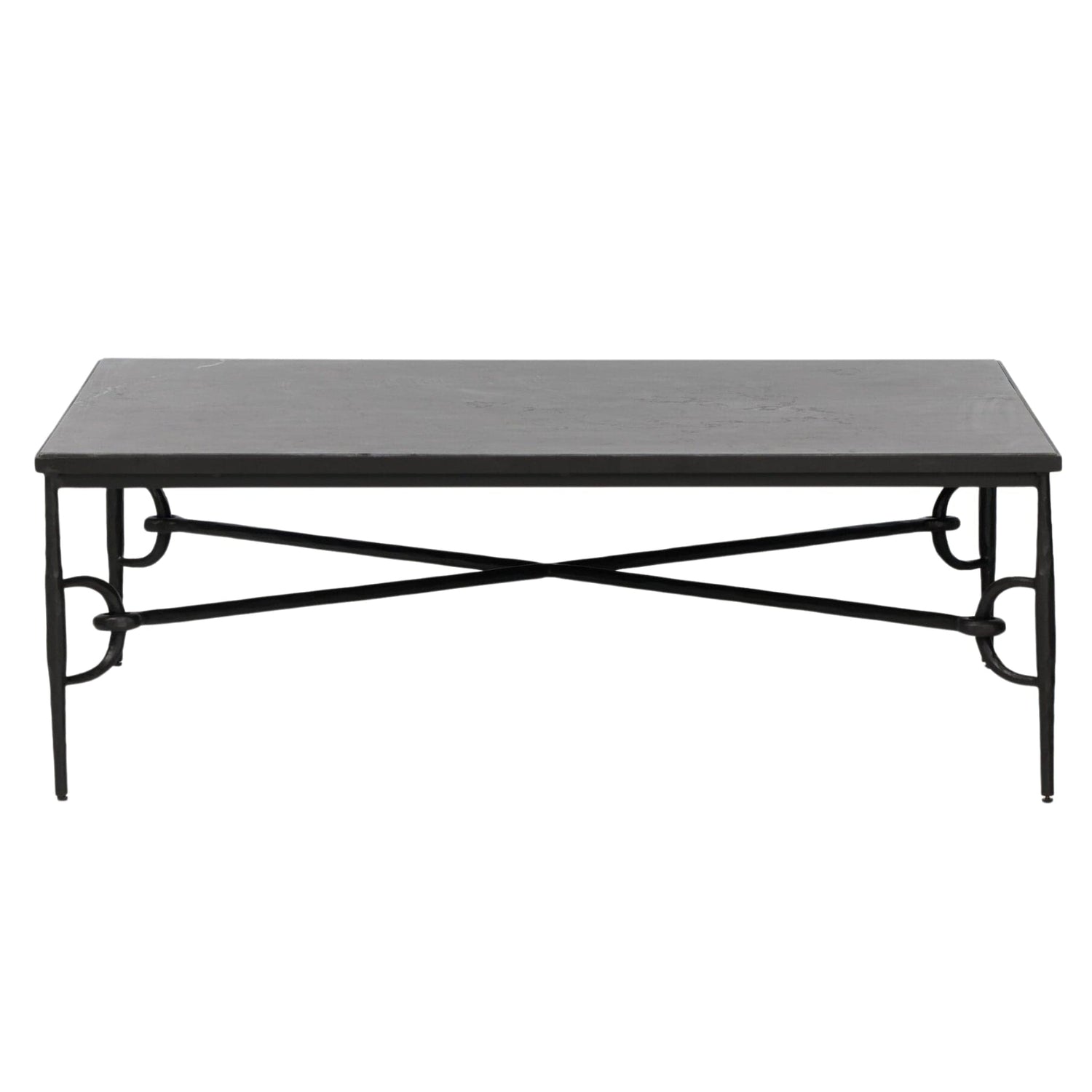 A slim, spare frame of hammered gunmetal pairs with a sleek tempered glass or marble top—including Italian marble—for a clean and timeless coffee table look. Stretchers attach to metal loops for an elevated design detail.
