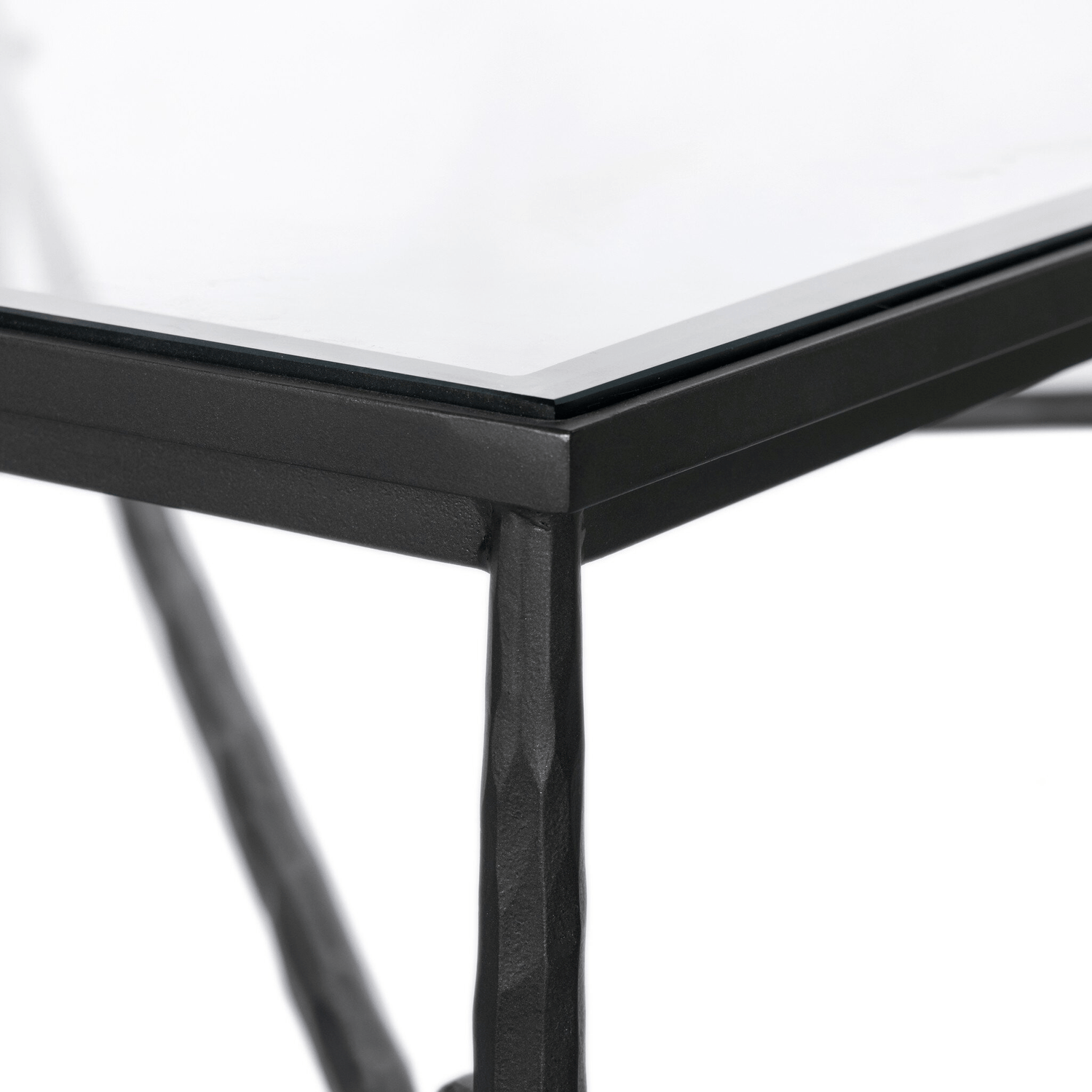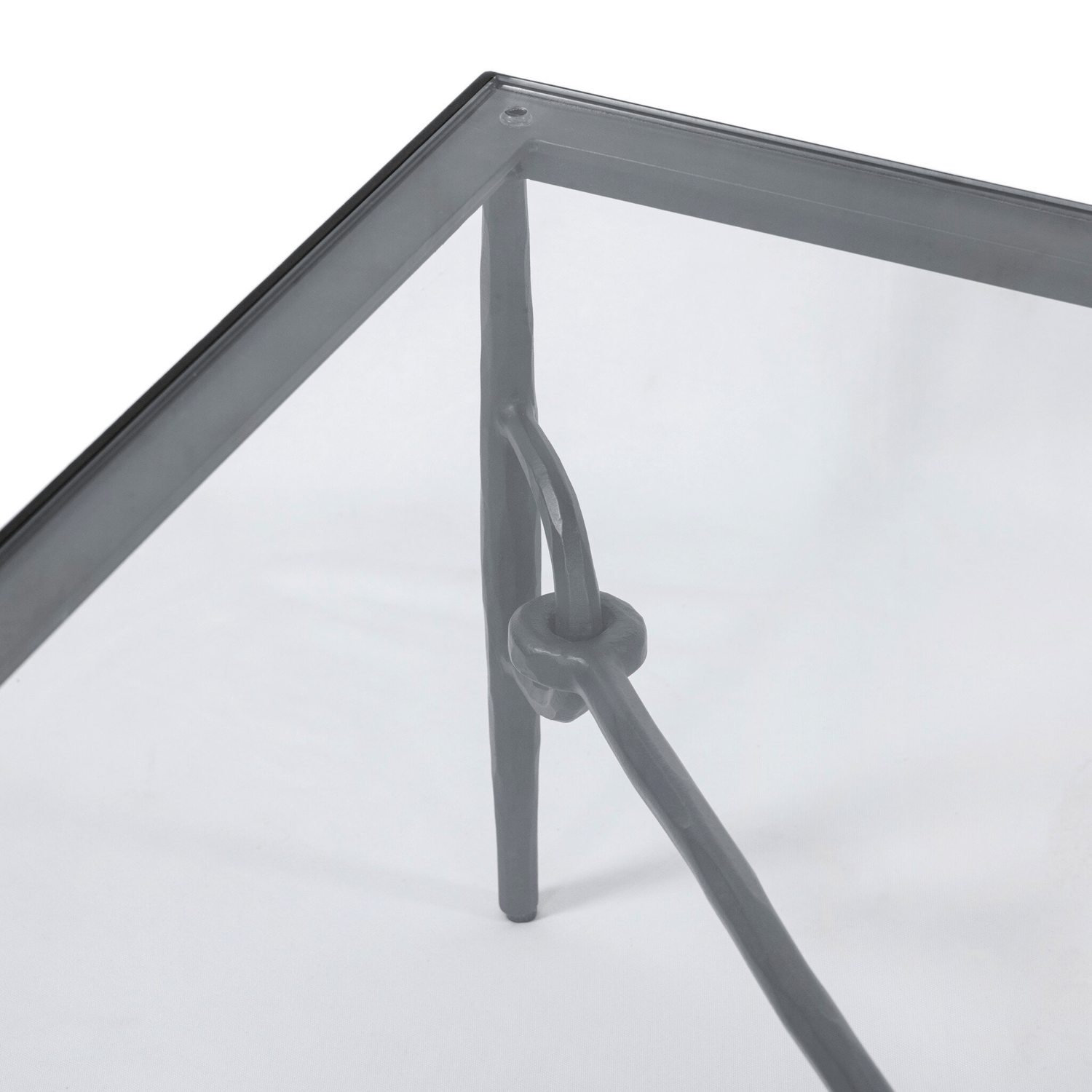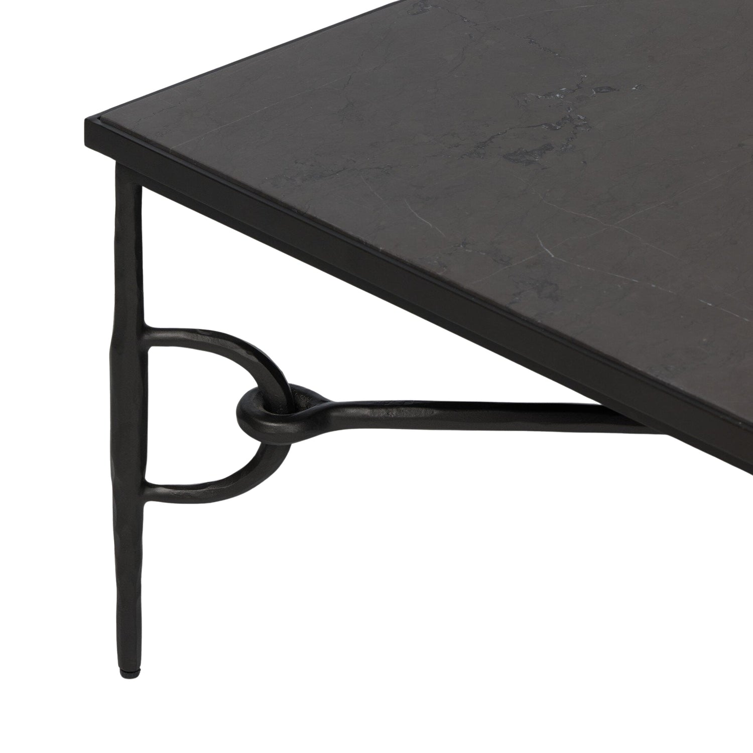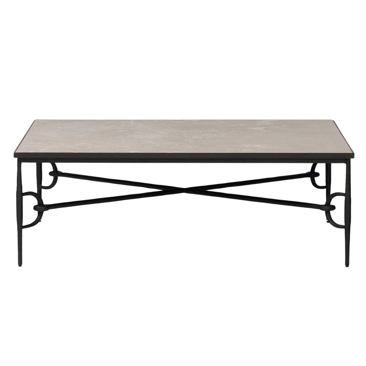 A slim, spare frame of hammered gunmetal pairs with a sleek tempered glass or marble top—including Italian marble—for a clean and timeless coffee table look. Stretchers attach to metal loops for an elevated design detail.