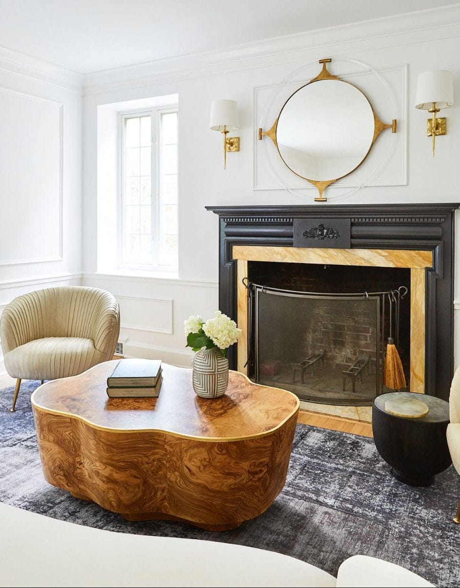 There's nothing subtle about the Page. The coffee table's abstract shape is highlighted by the bold patterning of its olive ash burl wood veneer. Faux-raffia textured gold trim along the table's edge blends in with the design but brings a bit of muted glam to its otherwise organic look. Each table will be entirely unique natural work of art.