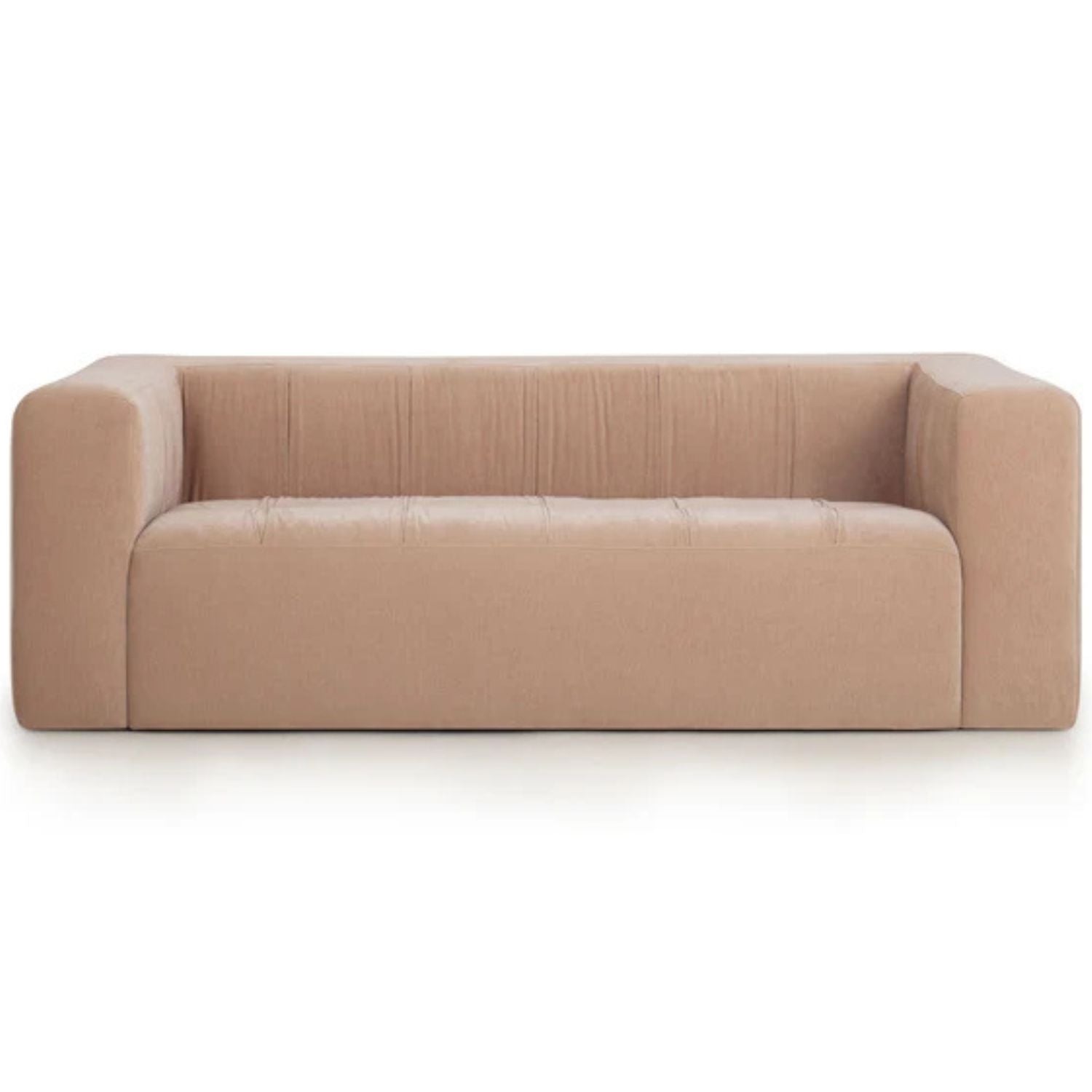 Soft and structured, the Alden Upcycled Chenille Sofa brings sustainability into a sculptural silhouette. Crafted from ruched upcycled velvet spun from reclaimed ocean plastic, its thick padded arms and channel-tufted seat deliver both comfort and a high-fashion finish. Offered in taupe or peach, Alsen's a consciously chic choice for modern living.
