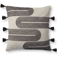 Modern and playful, this black-and-white throw pillow from Brigette Romanek x Loloi features embroidered arch designs trimmed with tassels. The front pillow cover is made of 100% cotton and measures 22” x 22”, a standard size to style in living rooms and bedrooms.
