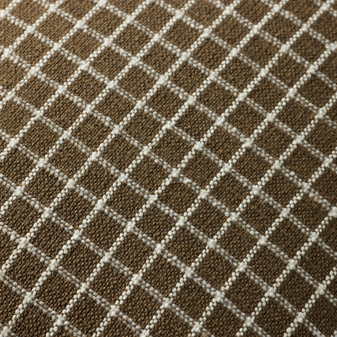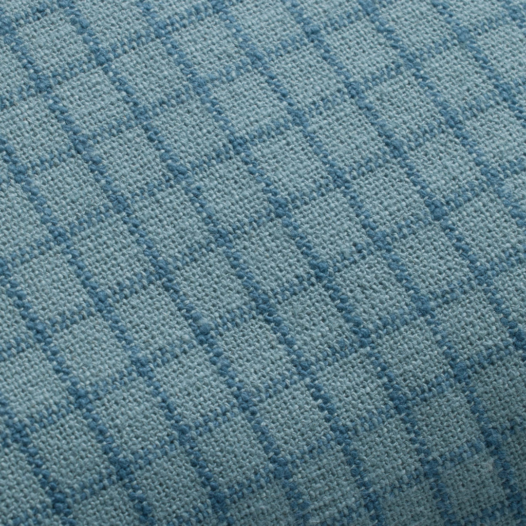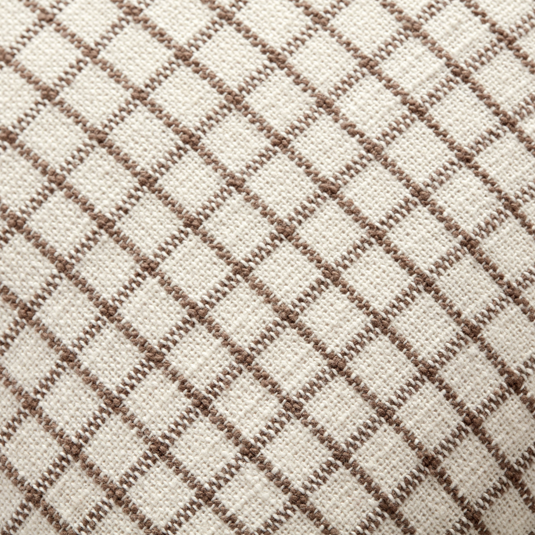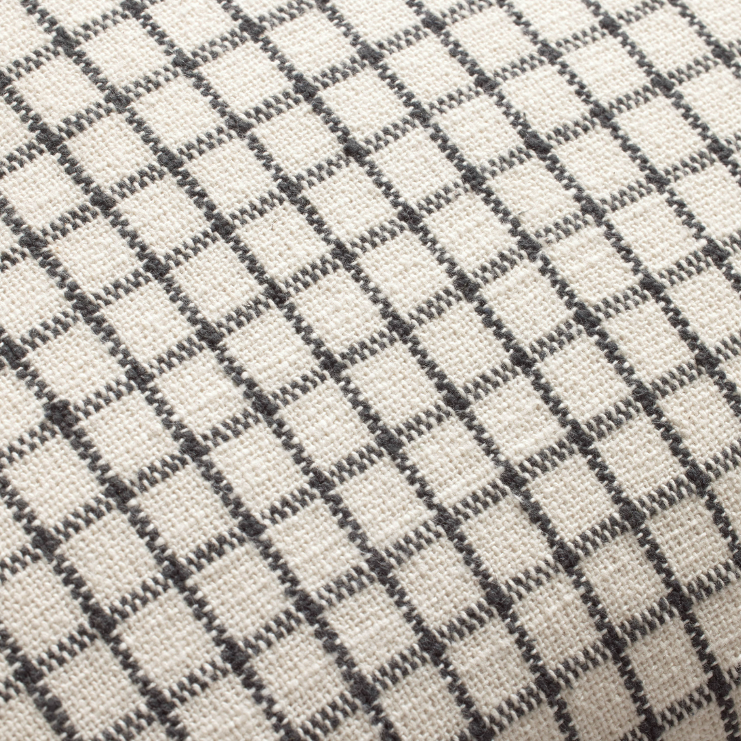The Dinah throw pillow from Chris Loves Julia x Loloi features a subtle gridded pattern against a background, framed with short ruffles for a sophisticated playfulness. The pillow is made of cotton, polyester, and rayon and a standard size to style in living rooms and bedrooms.
