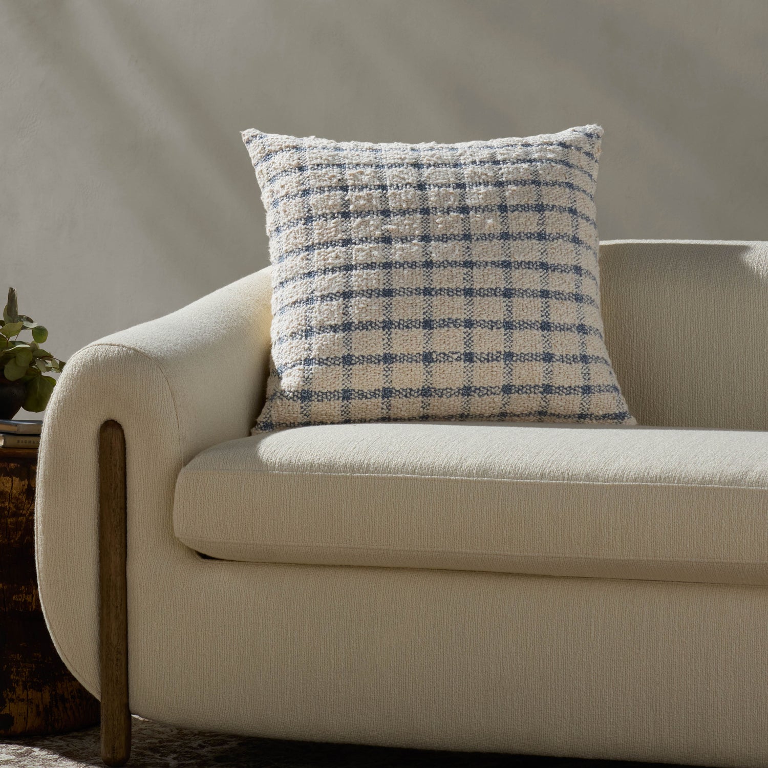 The Erin throw pillow from Magnolia Home by Joanna Gaines x Loloi features a cozy gridded windowpane design for traditional, farmhouse, or cottage home decor. The pillow cover is made of cotton and other fibers in India with a versatile size for living rooms and bedrooms.