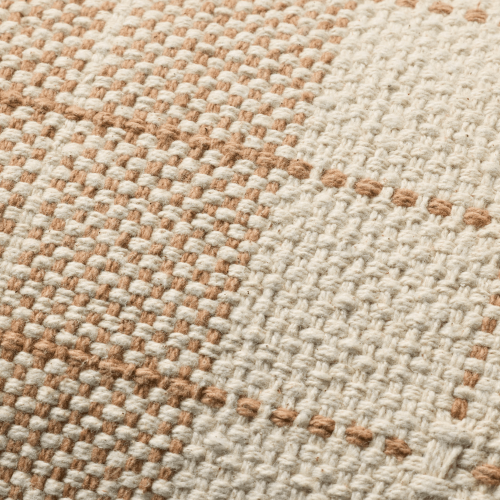 This sophisticated throw pillow features a grid design in natural ivory, adding timeless pattern to living rooms, bedrooms, and more. The lumbar pillow is hand-woven in India of 100% cotton.
