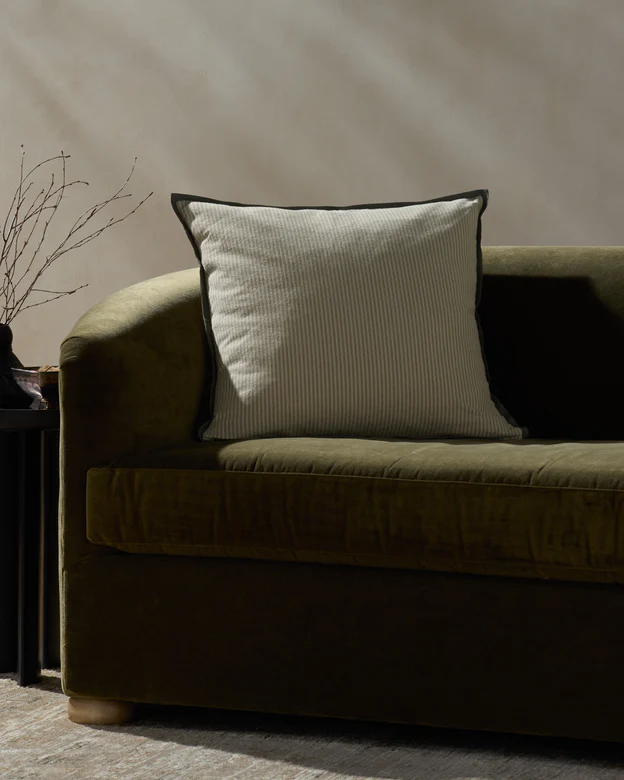Jeremiah Brent has a talent for shaping spaces around people, grounding high design in a sense of personality and intention. In this collaboration with Loloi, he brings that approach to a collection of pillows marked by meticulous craftsmanship and a quietly bold style. The Sullivan throw pillow features subtle stripes with contrast flange edges, styling an elevated accent for beds, benches, or lounge chairs.