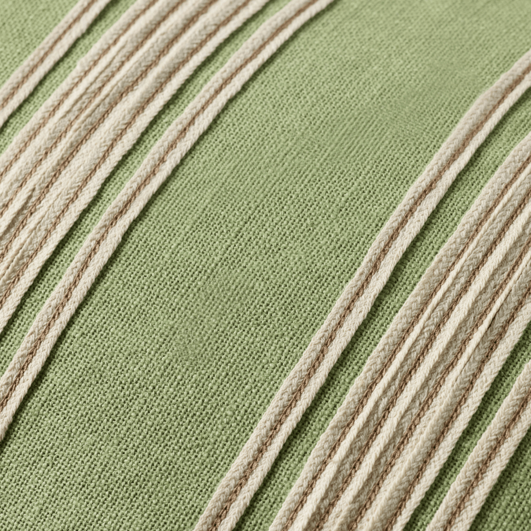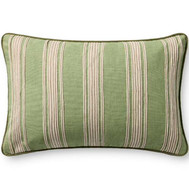 The Verona throw pillow by Chris Loves Julia x Loloi features a classic wide ribbon stripe for many home decor styles. The striped pillow is made of 100% cotton in India and a standard lumbar size to style in living rooms and bedrooms.