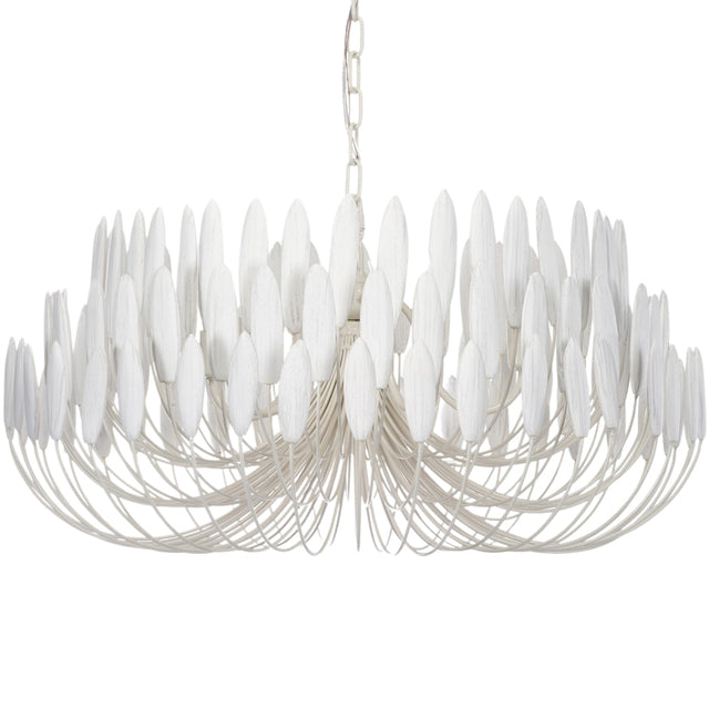 Our Milano chandelier brings pure decadence to any space. Carefully constructed from curved pieces of wood and metal, the boldly open bottom and feather-like ends cast a warm glow and evoke pure charm.