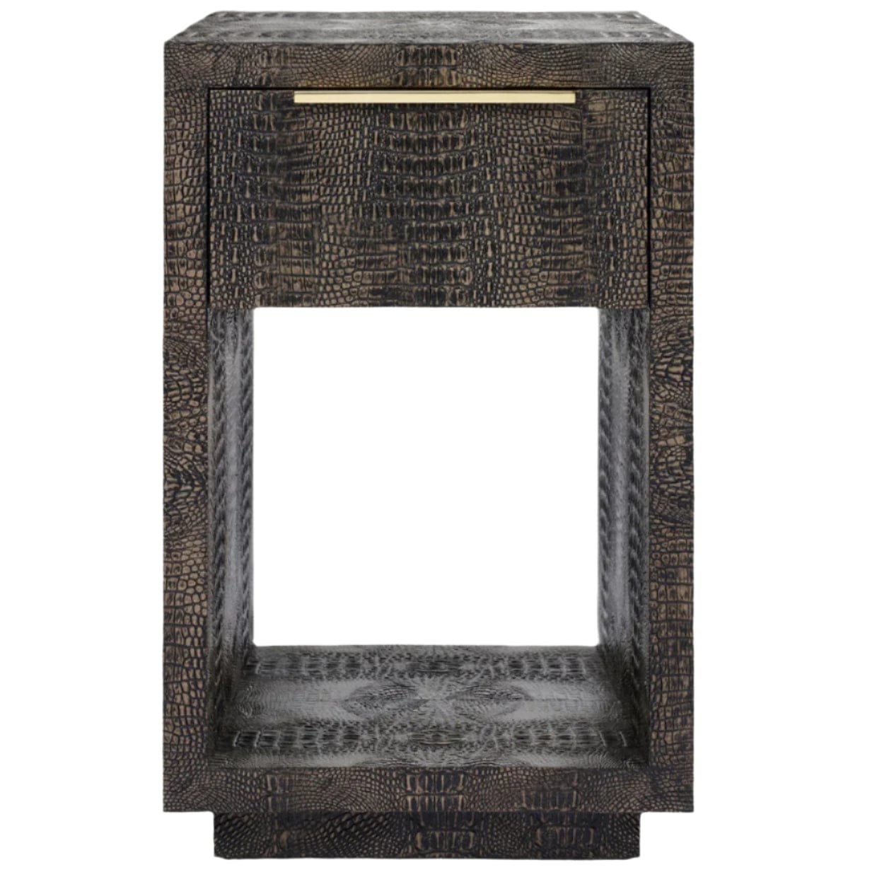 Introduce a lavish texture to your latest project with the Pierce nightstand. Featuring faux crocodile and sleek lines, the Pierce brings an undertone of elegance to any room.