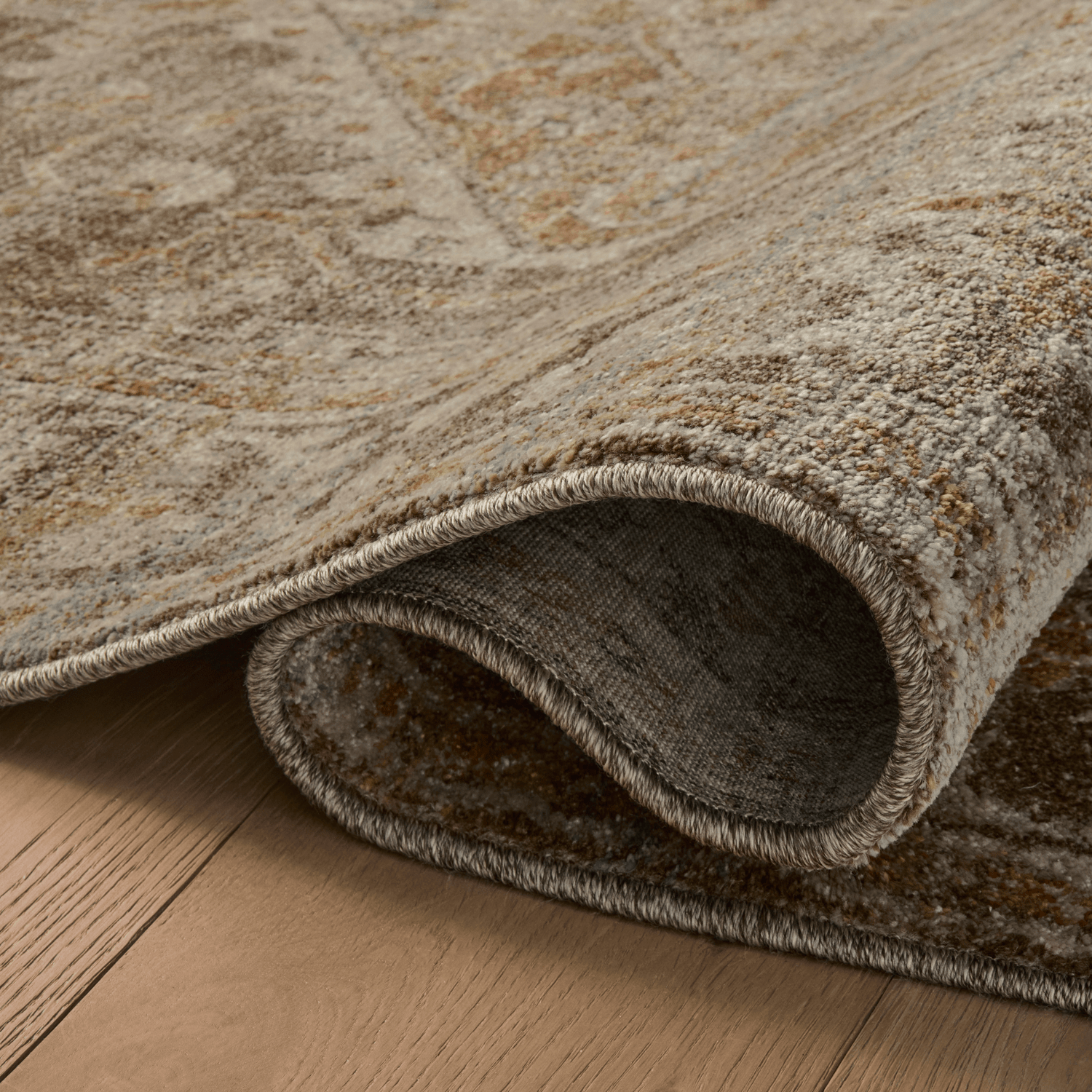 The Mona Collection by Magnolia Home by Joanna Gaines x Loloi is a power-loomed area rug with a framed design featuring traditional motifs and medallions in muted palettes. This collection is made of easy-to-care-for polypropylene and polyester in Egypt and OEKO-TEX certified, ensuring its materials don't contain harmful substances.