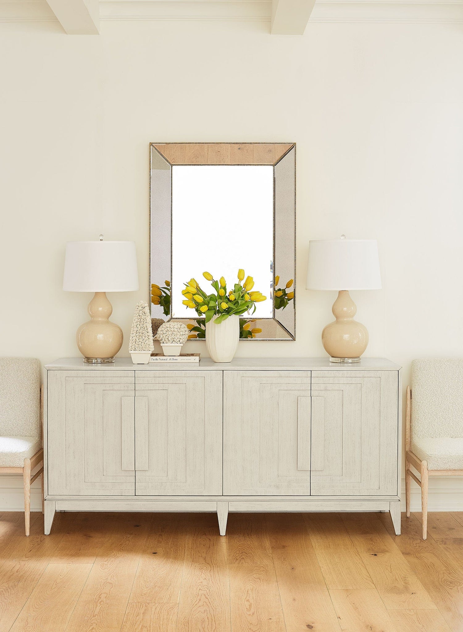 Sleek and sophisticated, the Cooper 4-Door Cabinet blends modern design with intricate craftsmanship. Its symmetrical and geometric woodwork seamlessly integrates the pulls for a clean look. Finished in Sailcloth Sheen, its clean lines and sculptural detail make a statement, while its sturdy construction ensures lasting style and function.