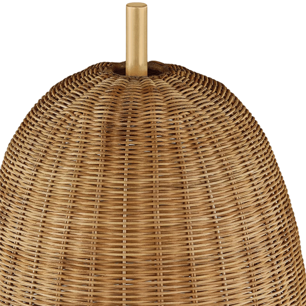 Pulling reference from traditional basketry, Beatrice features an oversized yet slender wicker shade paired with a simplified Aged Brass base. The intricate weaving diffuses light for a soft, ambient glow, while the reflective metal adds a touch of luxurious shine. This fresh accent piece is ideal for layering in a living room or bedroom.