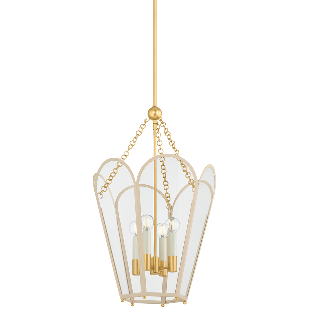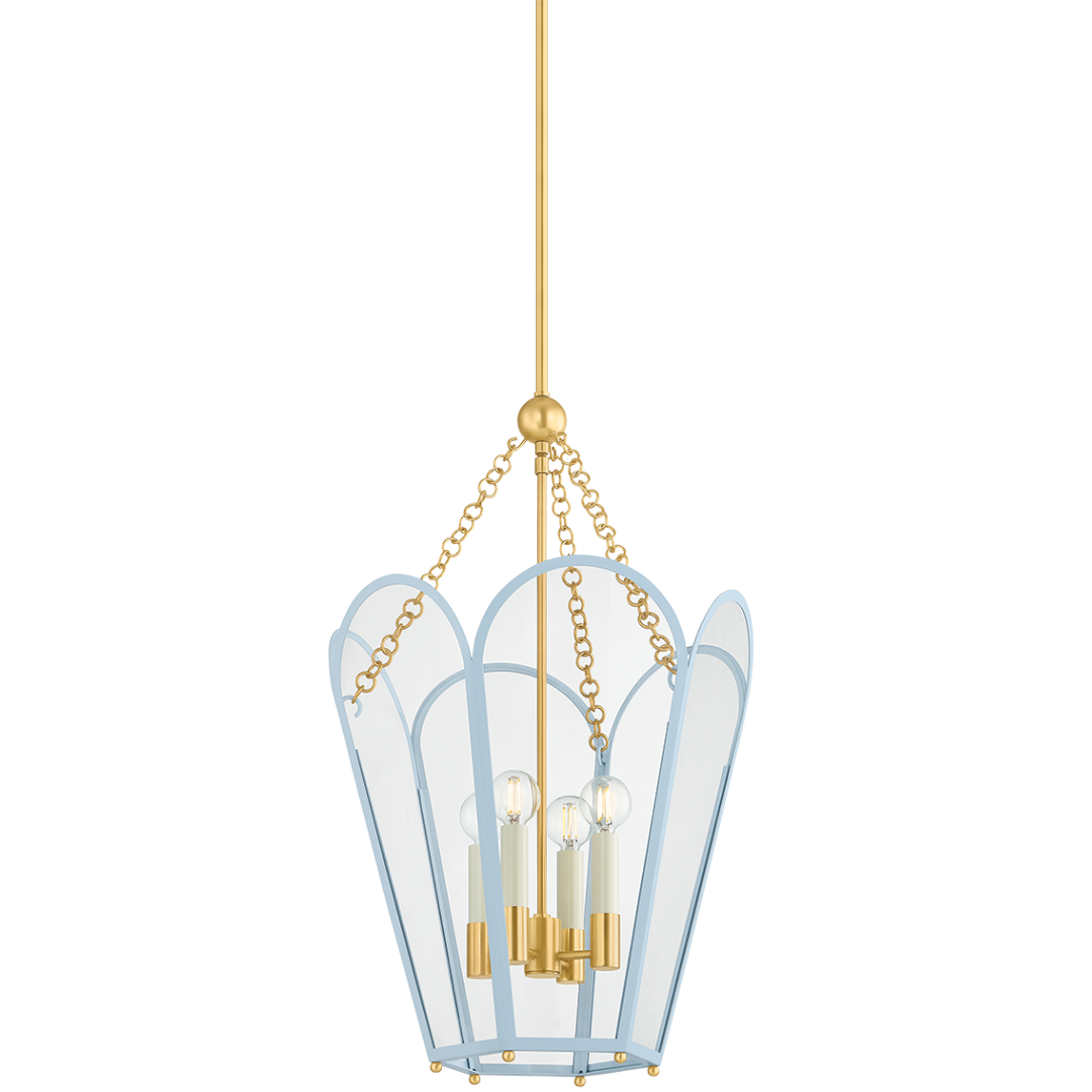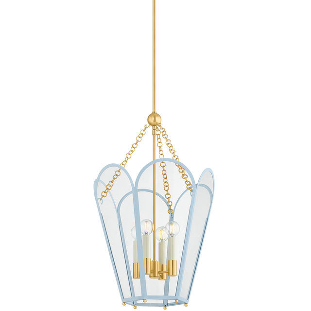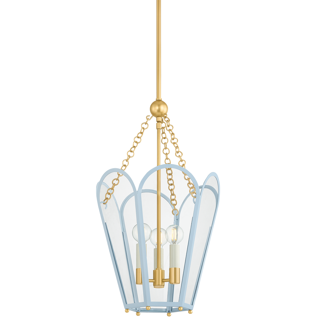 A classic lantern shape is reimagined with the spirit of modern romance. The hexagonal frame of Clarisse features arched glass panels that reveal cream candles. With a mix of Aged Brass and either Soft Bisque or Arctic Ocean finishes, each lantern is a festive celebration of color.