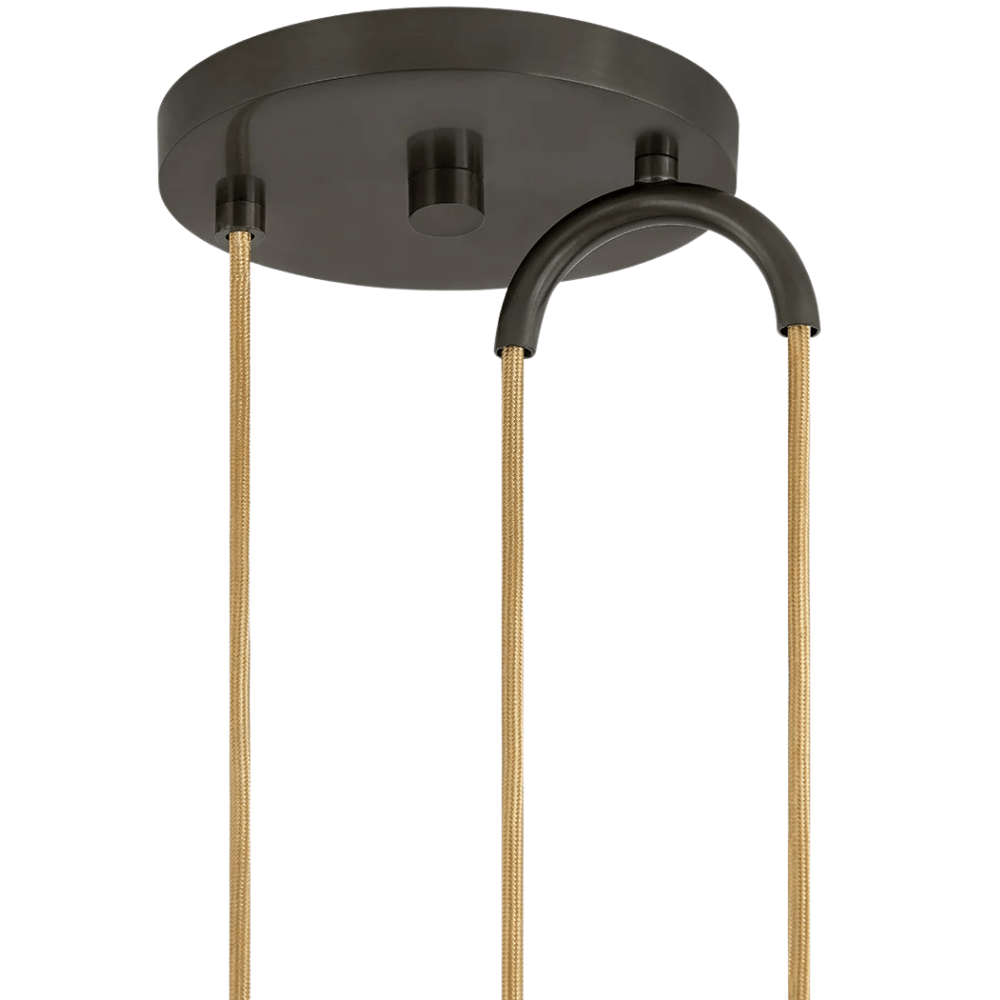 Loops, spheres, and cylinders converge to create the artful composition of this rise-and-fall pendant. Beyond adding style, the collage of geometric hardware elements is also integral to the height-adjustable suspension. A Soft Bisque shade serves as the focal point of Dottie, while the Aged Brass counterweight ball completes the fixture with a striking jewelry-like detail.