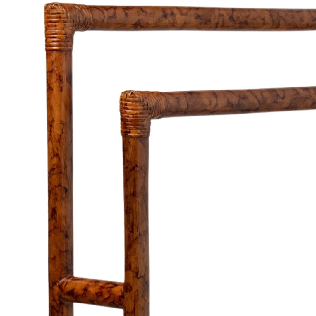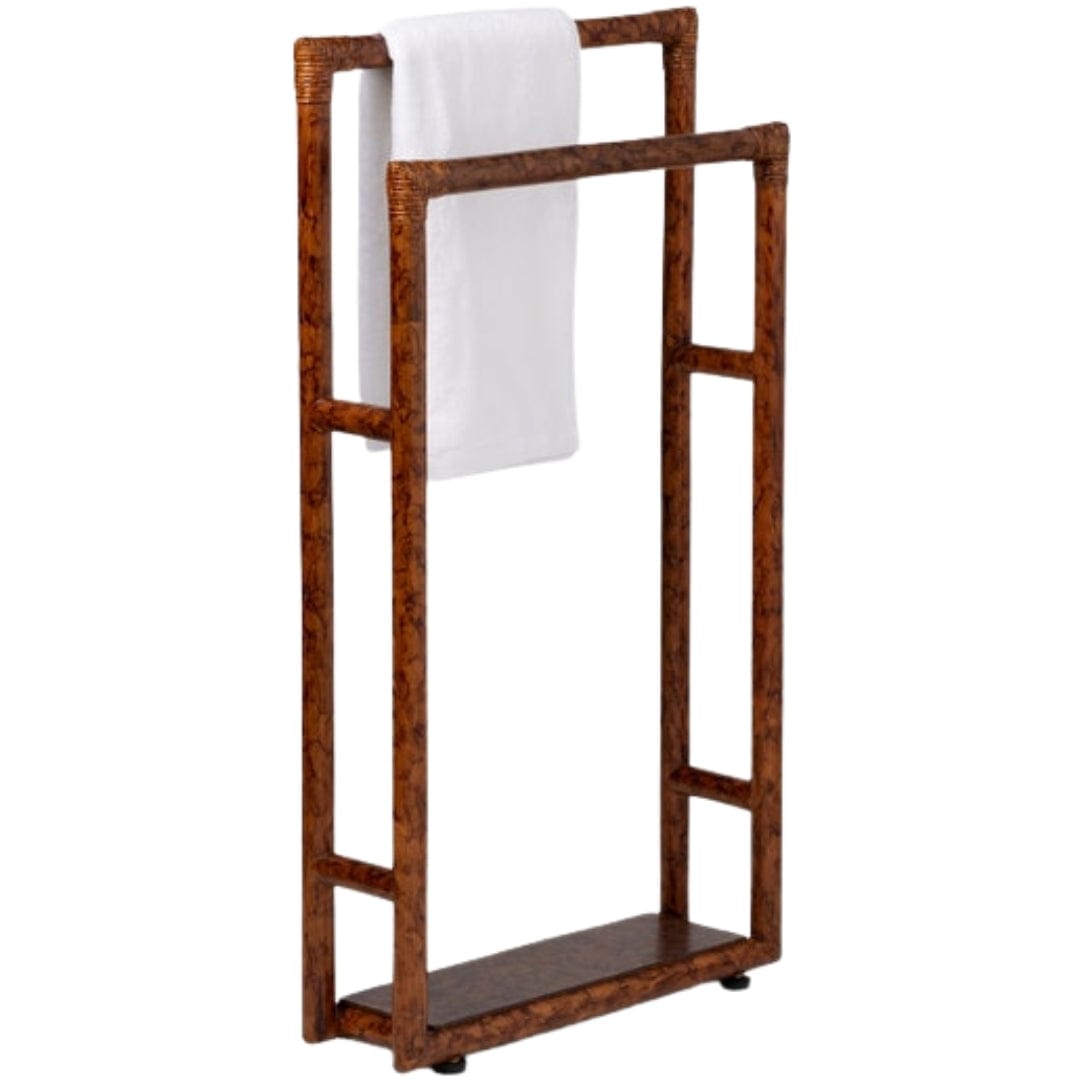 The Winthrop towel rack is a functional, yet distinguished, addition to any bath, boasting a tortoise shell pattern and a double-rod structure.