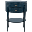 The Natalie Side Table pairs graceful curves and thoughtful storage. Its oval silhouette features two drawers and a lower shelf, ideal for stowing away essentials, with ample surface area for display. Crafted in striking anigre wood, the piece showcases a natural fiddleback grain that shimmers subtly in the light. Burnished bronze drawer pulls and sleek, tapered legs add polish and poise, giving this compact table a sense of lightness and quiet sophistication.