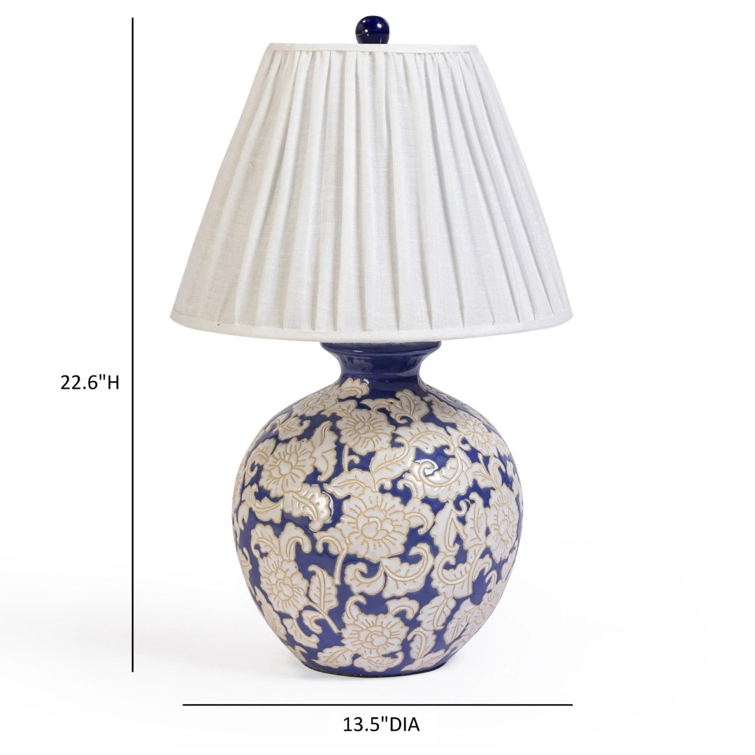 The Kathleen Blue and White Table Lamp brings timeless pattern and personality to your space. Its hand painted base features a classic Chinoiserie motif, giving each lamp its own character and charm. Elegant but easy to live with, Kathleen feels right at home on a bedside table, console, or side table where you want a touch of tradition with a fresh, collected feel.
