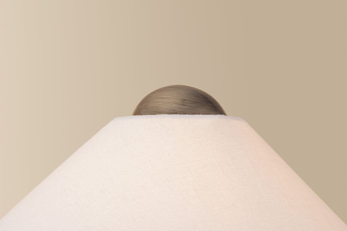 The Millbrae family merges neoclassicism with contemporary softness. Each table and floor lamp rests on a honed black Indian marble base with natural veining, lending individuality to every piece. A Patina Brass stem supports the conical off-white linen shade, finished with a sculptural finial. Highly versatile, Millbrae brings an air of luxury to living spaces, bedrooms, and reading nooks.