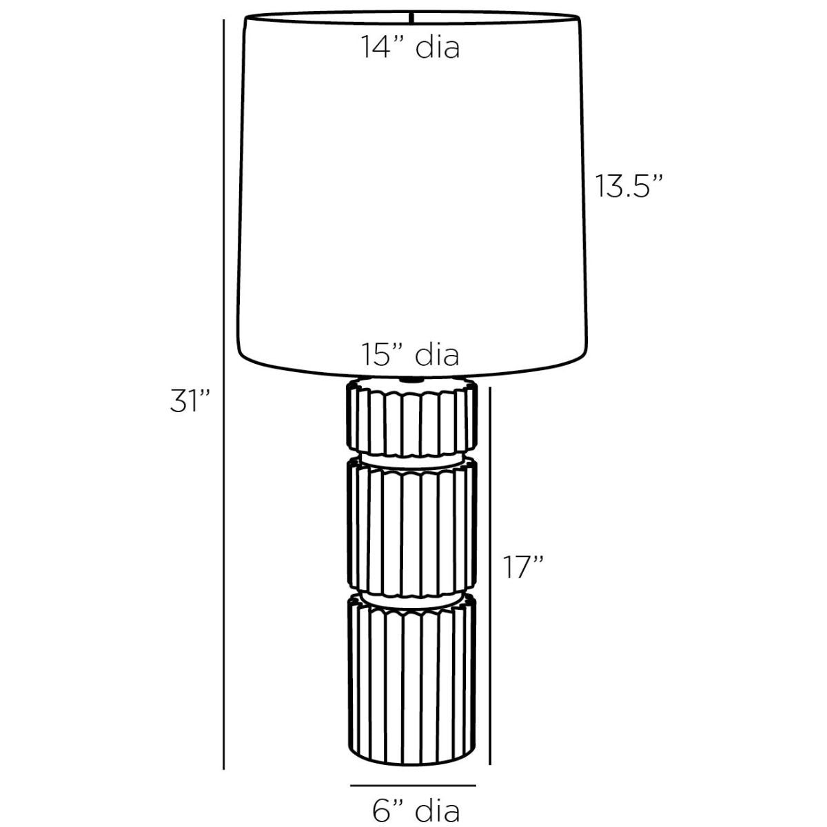 Overall: Dia: 15.0 in x H: 31 in