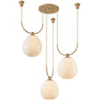 Soft and sculptural, the Jove family filters light through an organic, jewelry-like lens. Each cloud seedy glass shade hangs from a looping Patina Brass frame, recalling the drape of a necklace. The cords can be adjusted to varying lengths, allowing for a customized composition. Available as a 1-light sconce, 1-light pendant, or 3-chandelier and 4-light linear, Jove is both a highly usable fixture and a statement-making ornament.