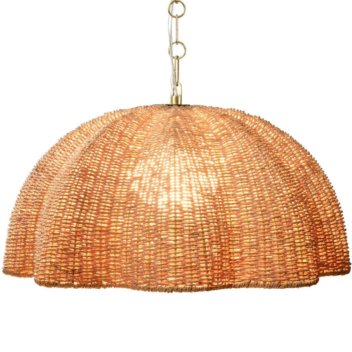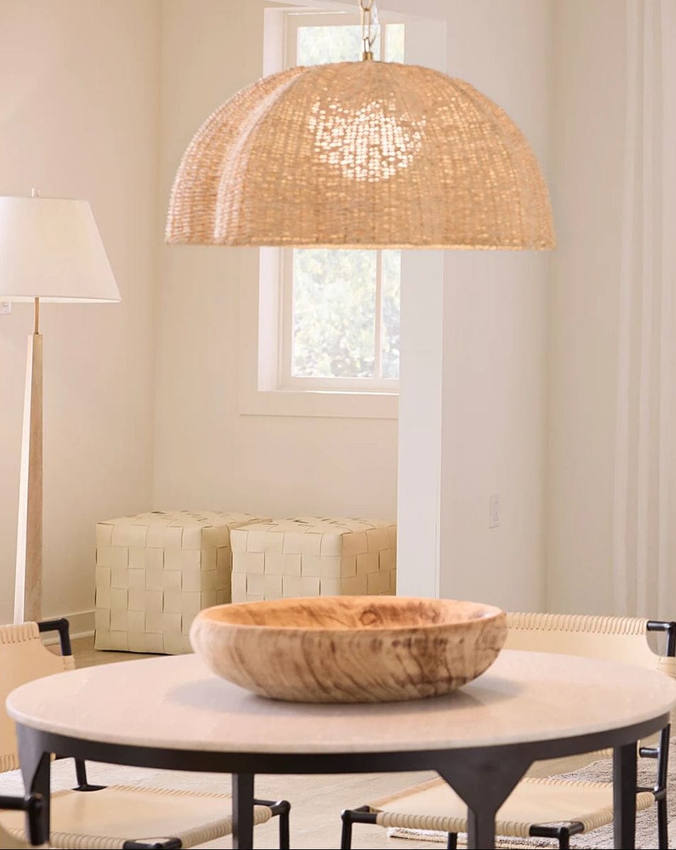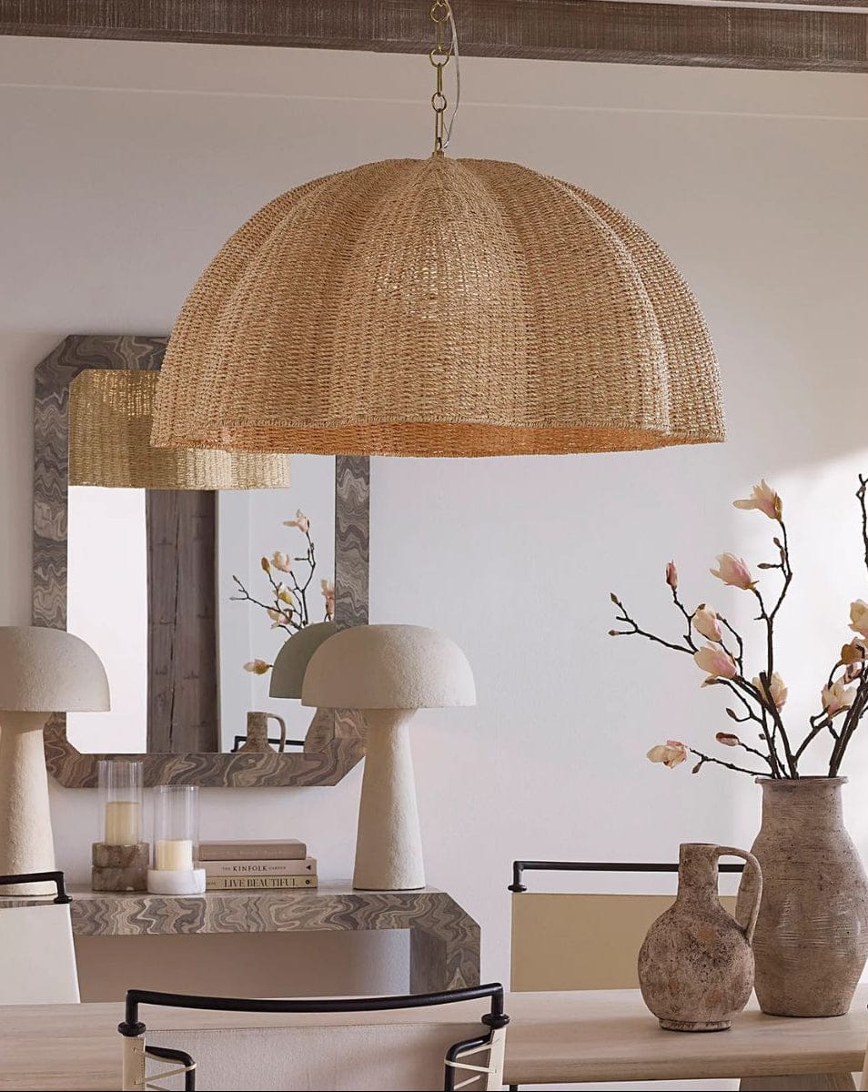 Natural palm leaf is expertly artisan-woven and shaped into a pendant reminiscent of an oversized bloom in this light, airy...