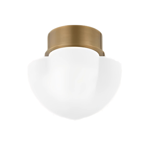 The Seabrook Flush Mount adds understated elegance to your interior with its refined simplicity. Featuring a gracefully curved shade of smooth, opal white glass paired with an aged brass canopy, this fixture delivers a soft, evenly diffused glow. Its timeless design blends effortlessly into hallways, bedrooms, or entryways, creating a subtly sophisticated ambiance that complements both modern and classic decors.