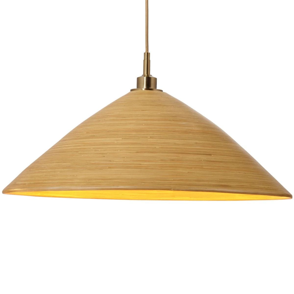 Ideal for a breakfast nook or kitchen island, these pendant lamps blend graceful, timeless lines with the casual charm of spun natural bamboo. Artisans hand-finish the shades and apply detailed brushed brass accents, ensuring fine craftsmanship. The resulting lamps complement most modern décor styles, adding depth, warmth, and sophistication. Their relaxed yet refined aesthetic elevates the surrounding space while offering functional, ambient lighting for daily use.