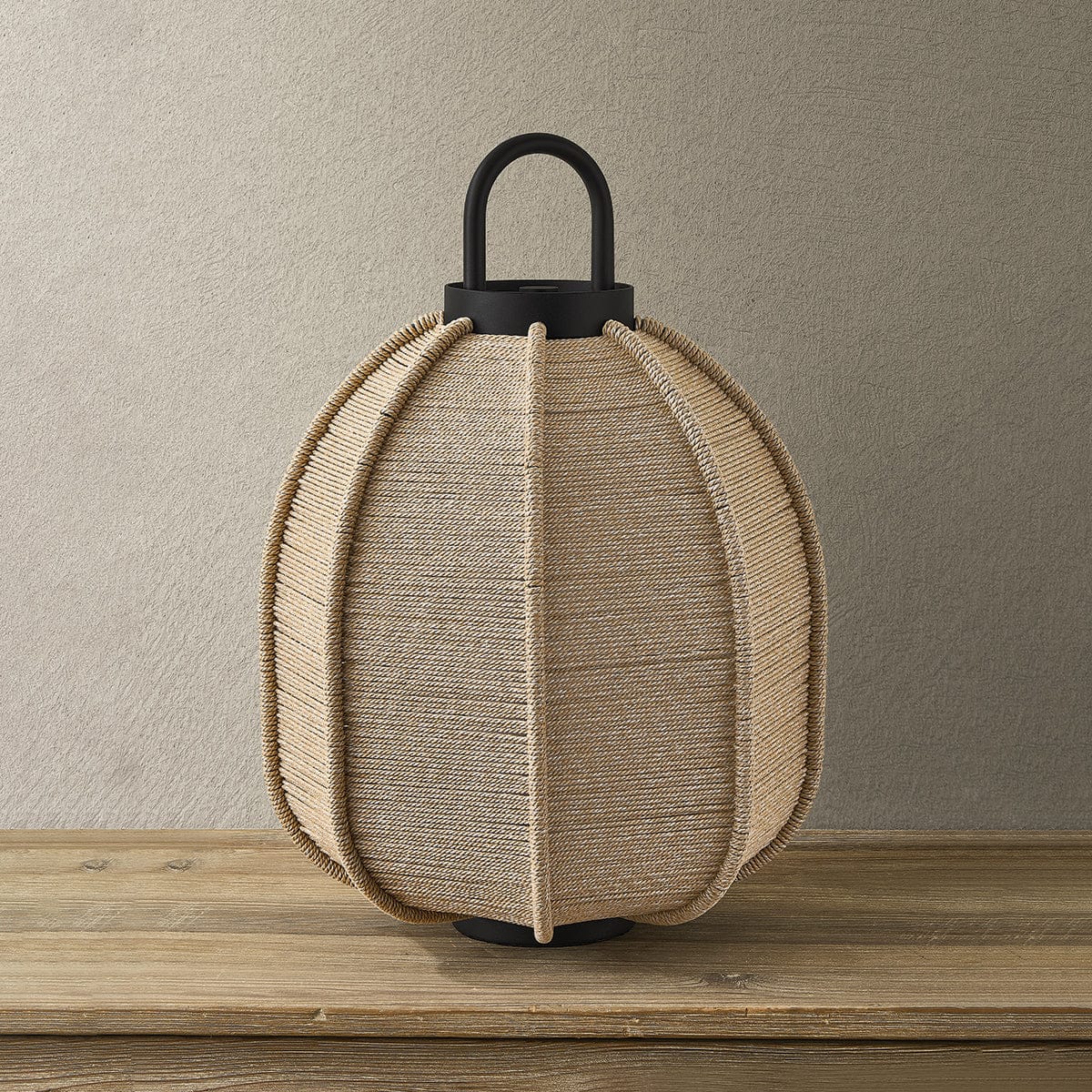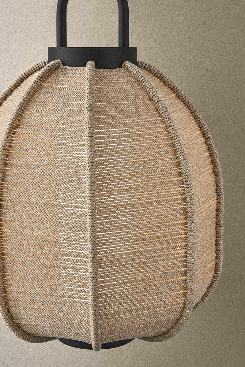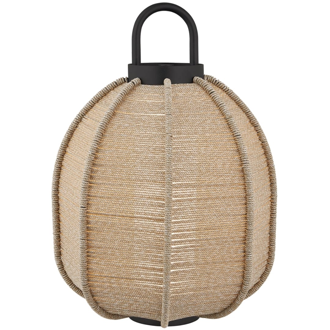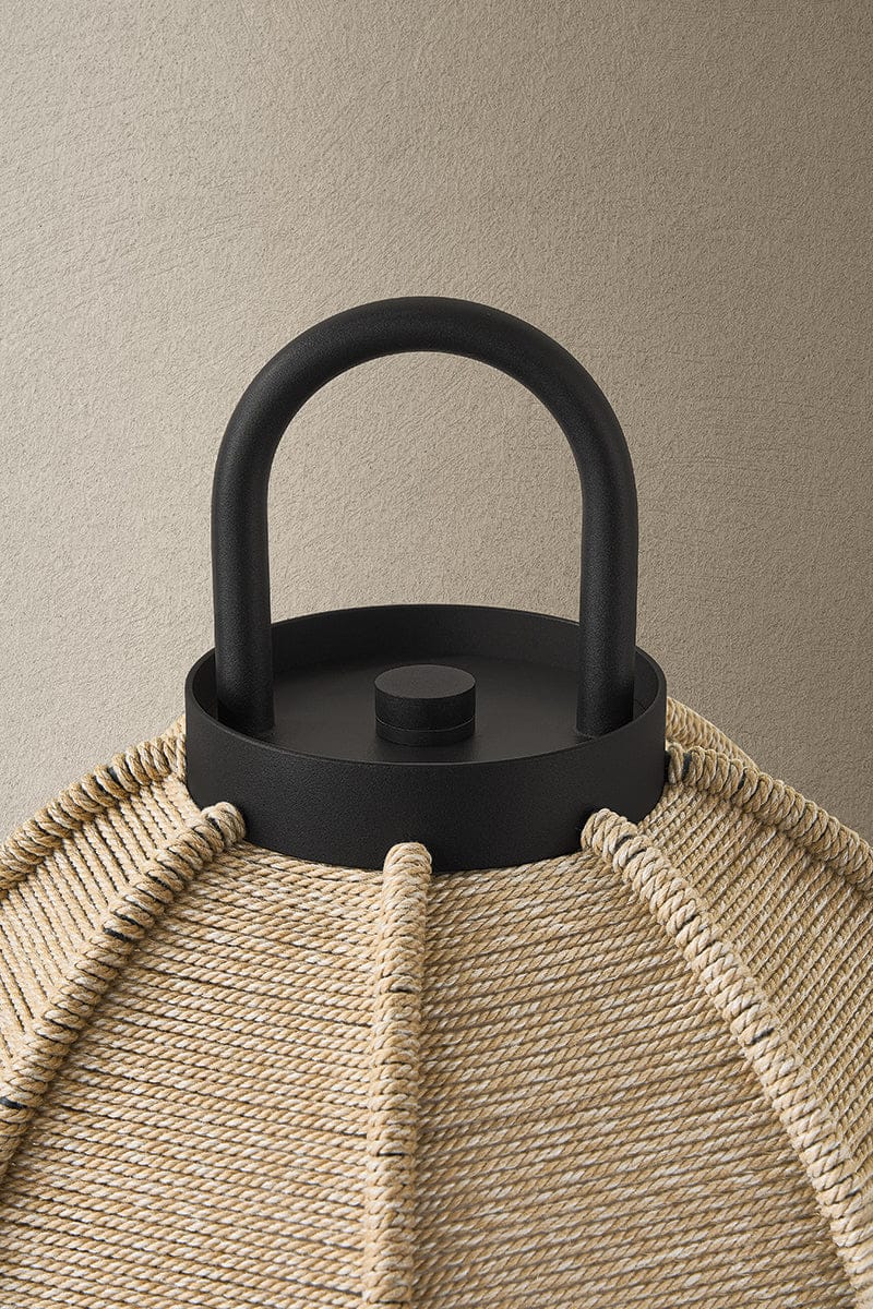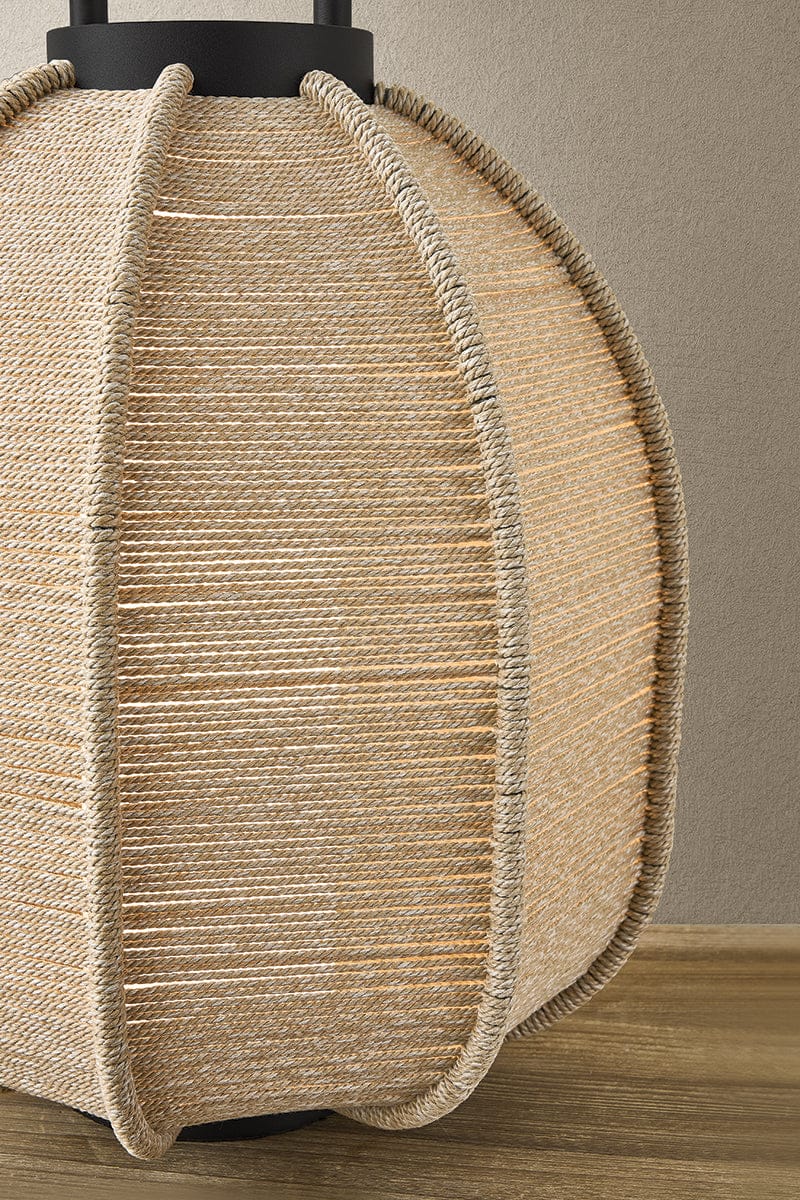 The Maltby lantern is designed to adapt to a variety of outdoor living areas, bringing light where hardwired fixtures aren’t possible. Wrapped in woven polypropylene cord and finished in Textured Black, it is weather-resistant, stylish, and built to last. Available in two sizes, the lanterns can be used alone as a table lamp, hung on a small or large wall hook as a sconce or placed on a lamp stand for ambient lighting. Simply remove and recharge the battery-powered LED when needed.