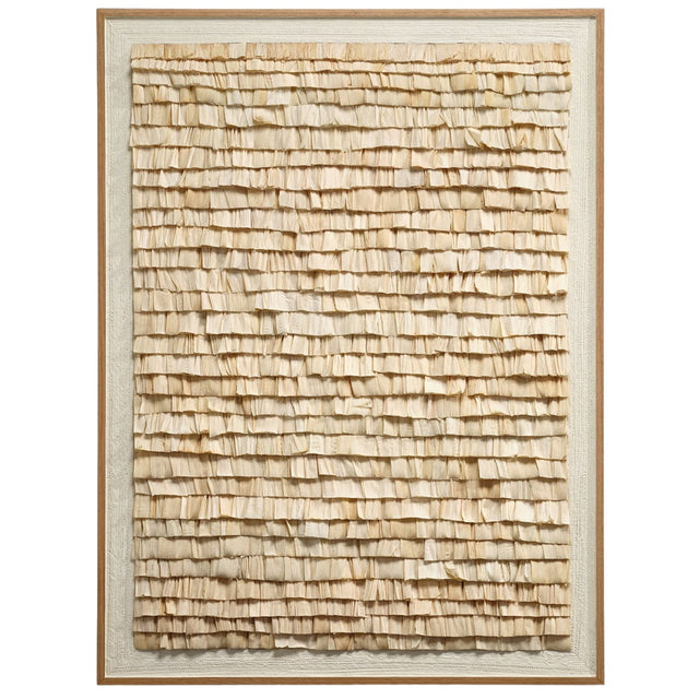 Beautiful layers of corn husks create a mesmerizing pattern with the Bradshaw. Encased in a banana bark frame designed to showcase each piece's slight variation due to the natural materials, it's a certified show-stopper.