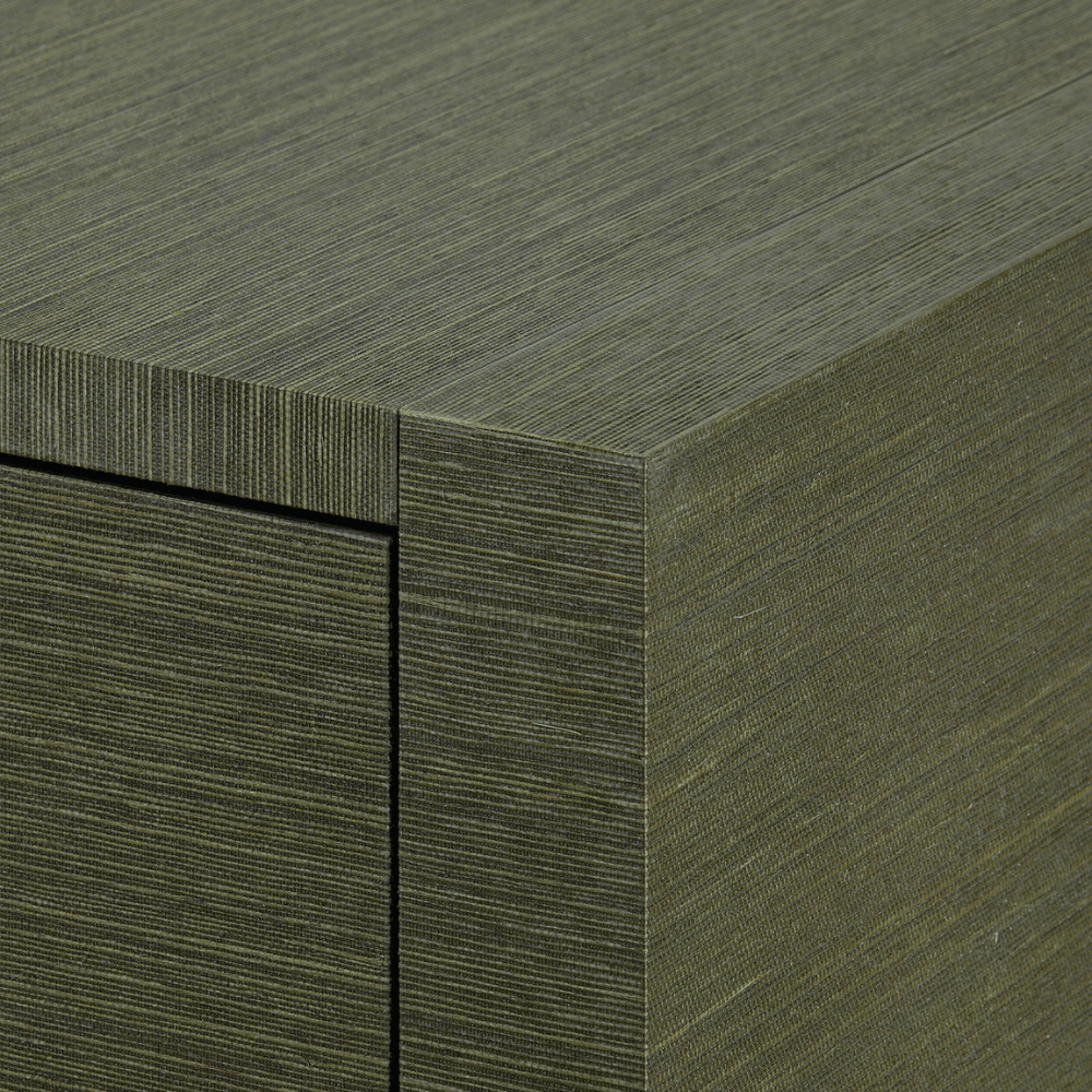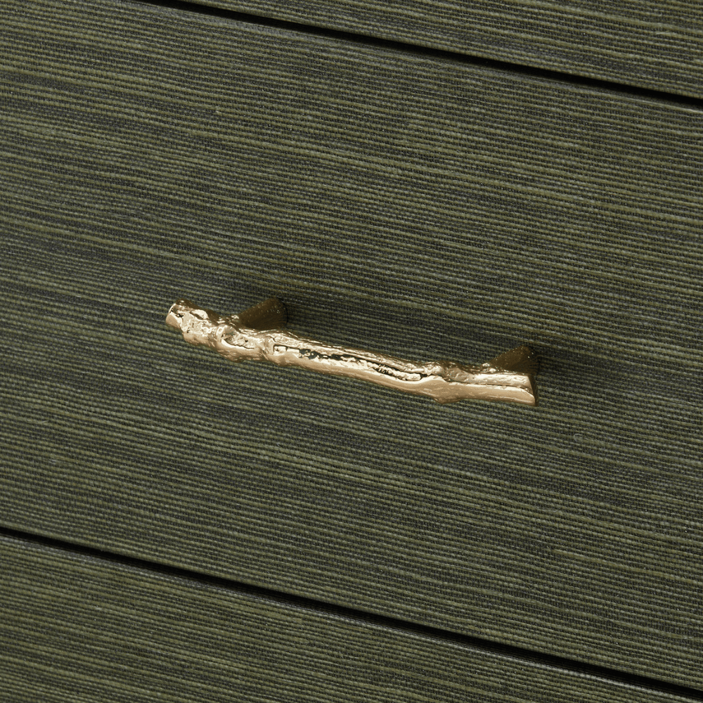 The Camden Collection blends clean-lined sophistication with subtle natural charm. Each piece is carefully wrapped in grasscloth, highlighting its smooth silhouette. Polished brass sabots at the feet add a gleaming, tailored touch, while the top drawer is slightly smaller—perfect for storing petite luxuries. Each drawer is finished with a sculptural pull shaped like a twig, offering an earthy, organic twist to this elegant design. The result is a collection that feels both grounded and gracefully elevated.