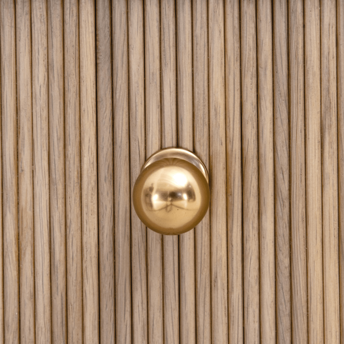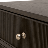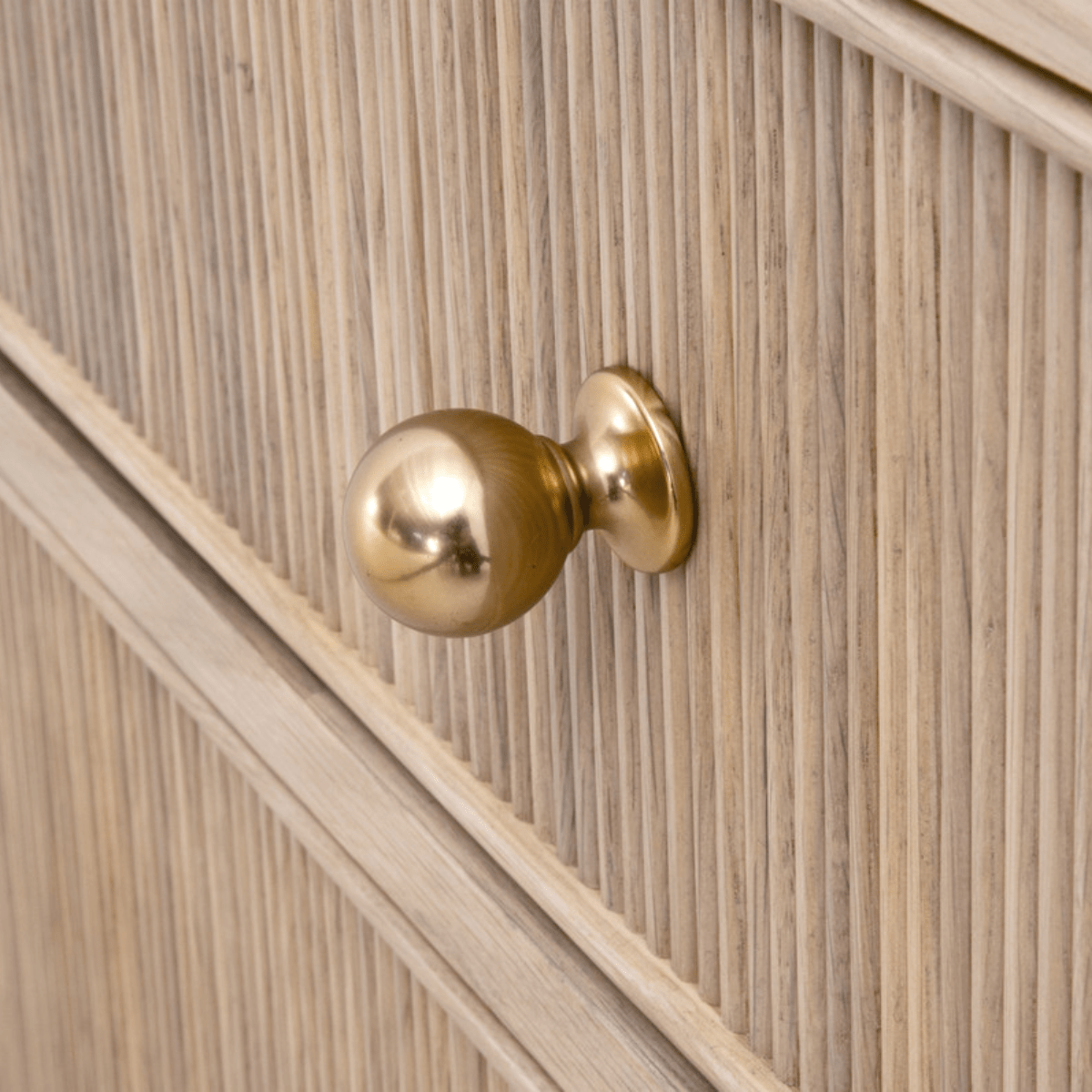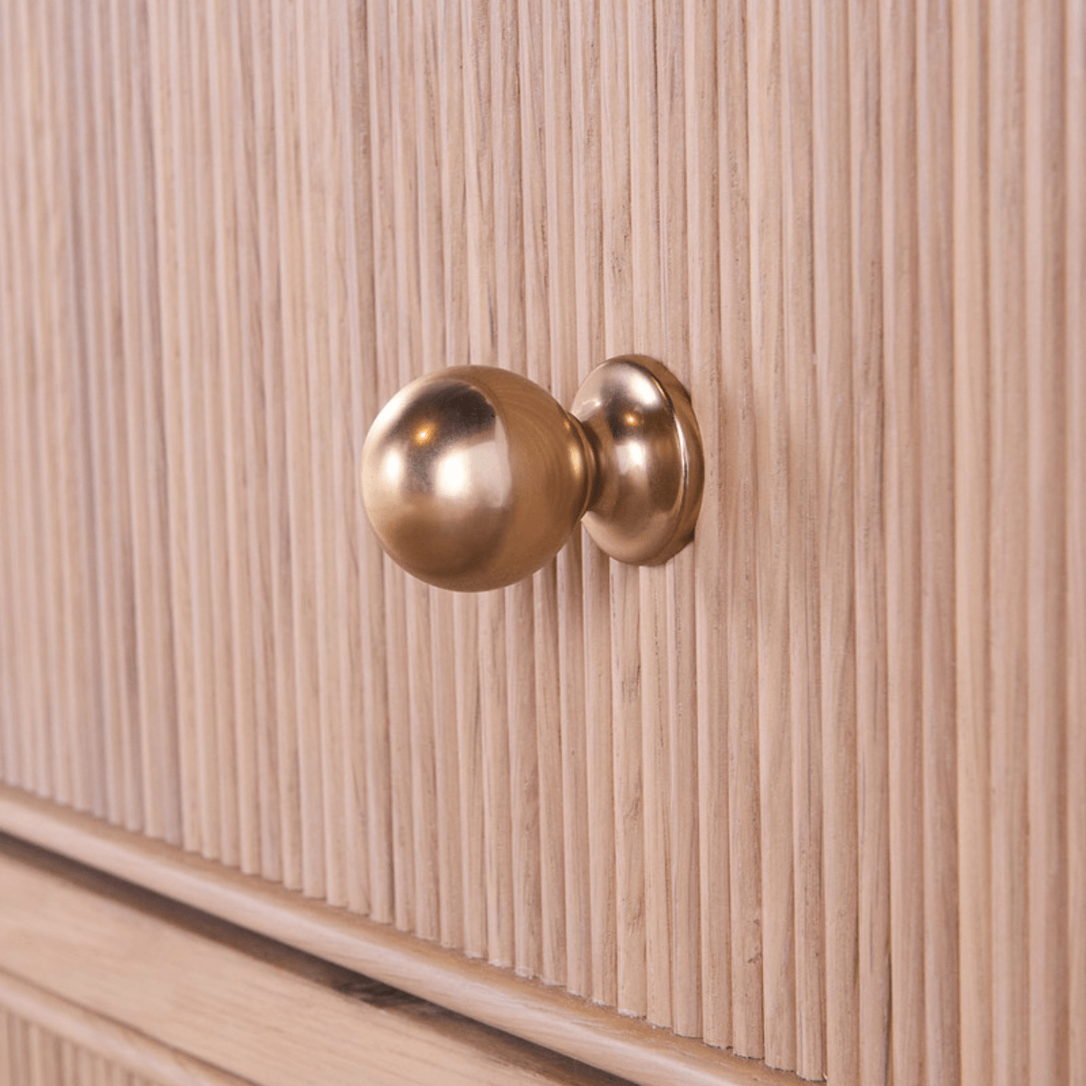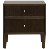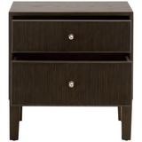 Discover a perfect blend of traditional and modern styles with the Highland 2-Drawer Nightstand by Essentials For Living. Crafted from a harmonious blend of solid oak wood and oak veneer, this nightstand has an oak finish that will pair well or add contrast to many interior designs. The drawers have fluted wood detailing which adds dimension and texture, while the polished brass iron knobs offer a simple and classic touch. The felt-lined top drawer is ideal for delicate belongings, and the dual metal drawer glides provide smooth and effortless operation. This nightstand will be a functional and aesthetically pleasing addition to your bedroom decor. Experience the essence of transitional design with this timeless piece.