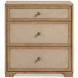 The Lorena Light Taupe Suede and Wood 3-Drawer Nightstand brings refined texture and functionality to your bedroom. Featuring a neutral wood finish with tonal taupe suede drawer fronts, this nightstand blends soft contrast with a sophisticated look. Three soft-close drawers offer smooth, quiet storage, while the velvet-lined top drawer adds a touch of luxury for your most delicate items. Perfect beside the bed, the Lorena Nightstand offers both style and everyday convenience.