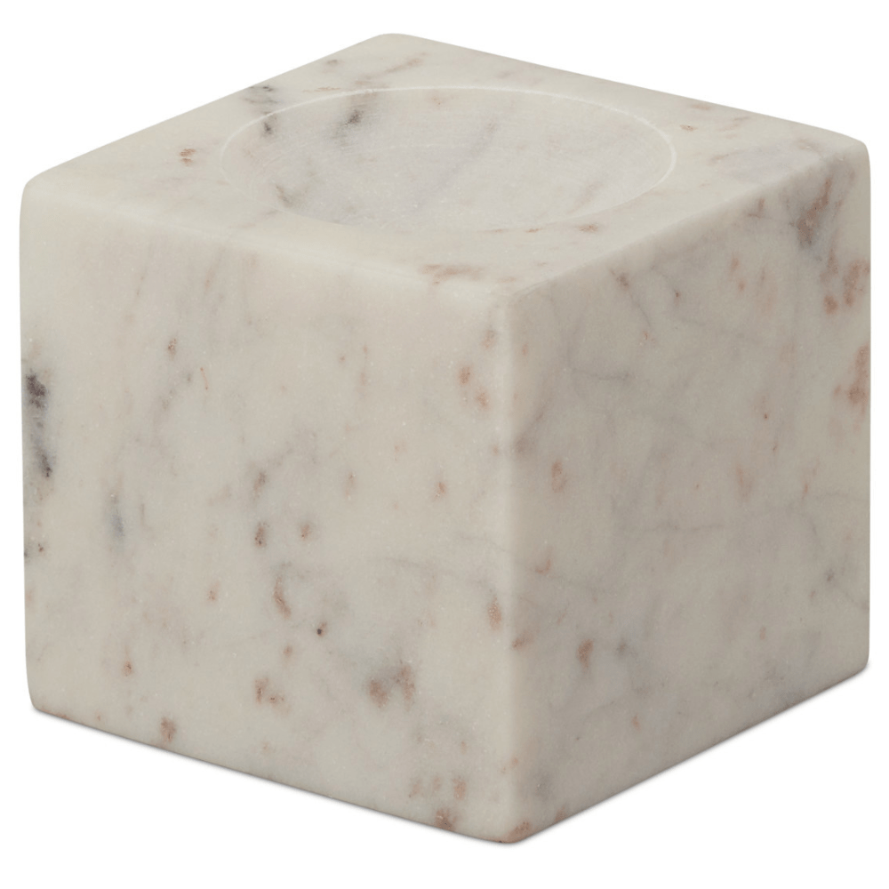 The Fresno Orb Set includes three sculptures made of bubbly glass that glow when touched by natural light. The artisanal quality of the glass makes these white and indigo blue accessories sophisticated elements in an interior. Each orb sits atop a white marble block so it is easy to position them perfectly. As a group, they create a sophisticated display.
