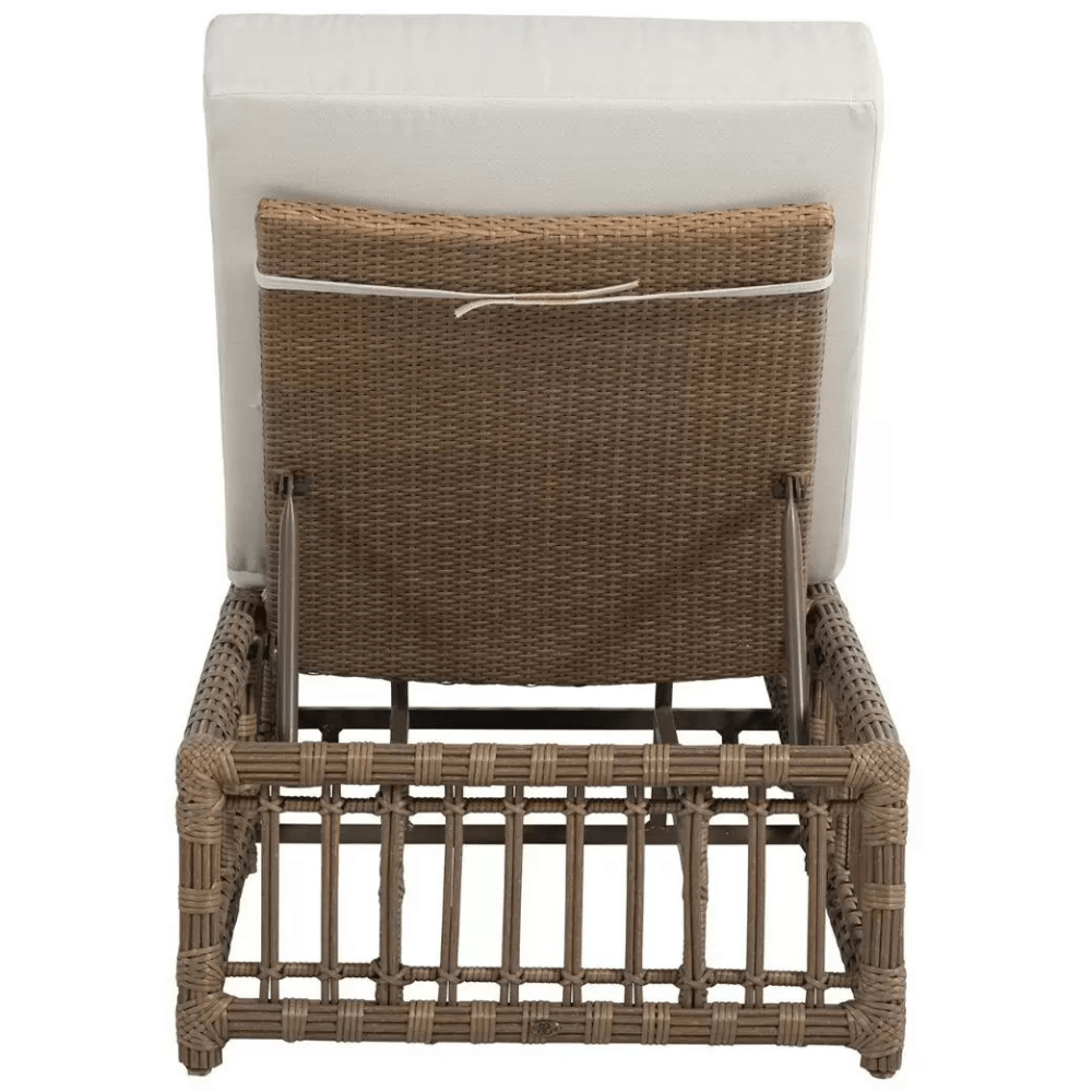 The Newport Chaise evokes the mid-century look of vintage rattan furniture that's as timeless and classic as it is beautiful. Handwoven in UV-resistant, N-Dura™ resin wicker, this chaise will withstand environmental elements for season after season of enjoyment. Multiple reclining options make it a perfect spot for relaxation in any outdoor setting. This item is designed to be enjoyed either with or without a cushion. Please call for fabric & cushion options.