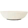 The low profile of this simple drum table style is equally at home in a contemporary outdoor room or a more transitional space, formed of black concrete composite with fluting details tapering down to a bronze stainless-steel base.