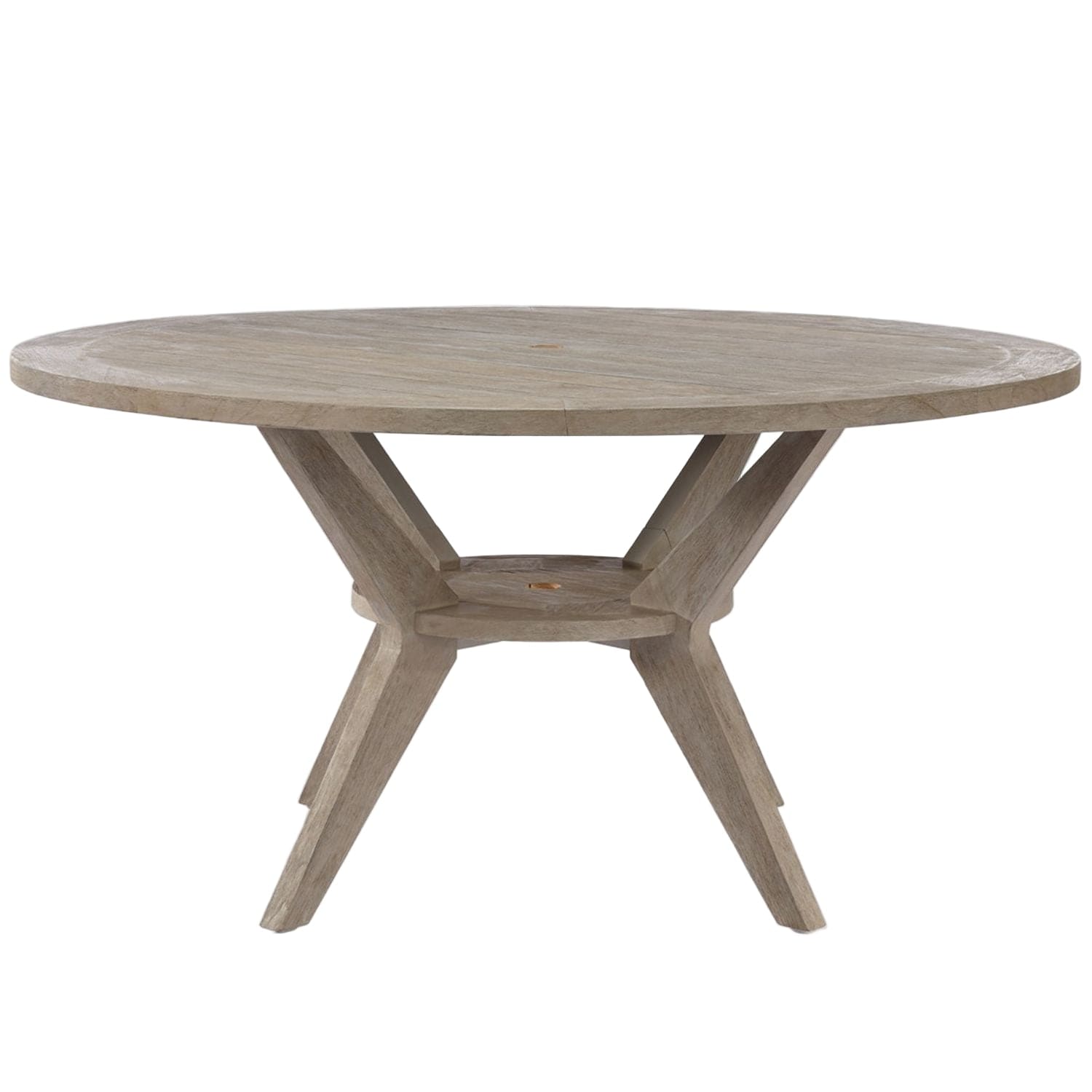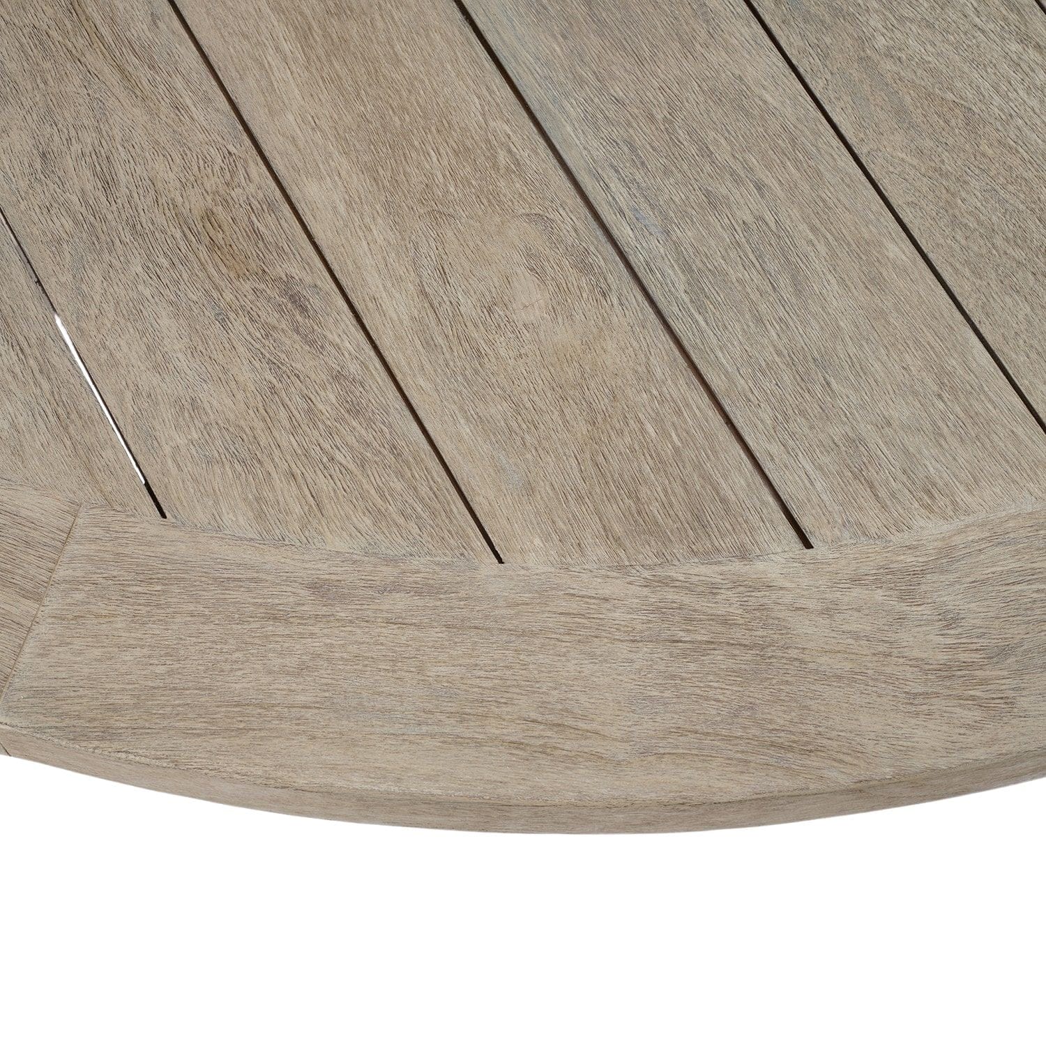 Gather around the Clifton and enjoy the beauty of rustic teak, crafted into a versatile table for year-round hosting. Featuring an angular base, a rounded top, and an umbrella hole for rain or shine, it's a practical celebration of a well-loved material.