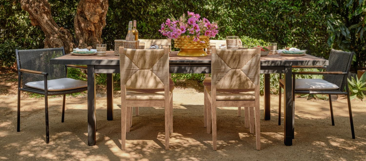Crafted from coastal teak and aluminum, the Franco extension dining table is designed to lengthen from 72” to 95” to accommodate gatherings of every size. Simply pull one end until the table has opened fully to reveal a hidden leaf, then push to close, locking the leaf into place.