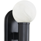 The Dion Outdoor Sconce combines modern sleekness with a nod to mid-century design, making it the perfect addition to your patio, porch, or garden walls. Its metal base paired with an alabaster-like glass globe, creates a captivating blend of contemporary flair and timeless appeal.