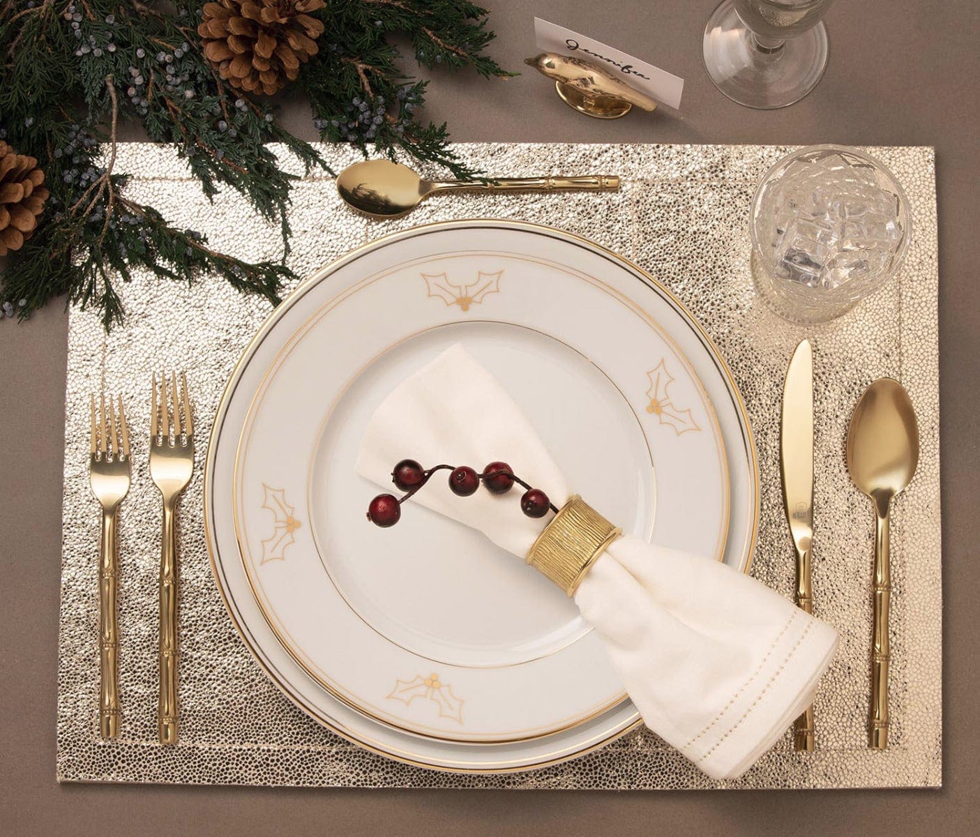 An elegant holiday-inspired collection with two options: Keep it classic with white and gold or add some festive flair with holly.