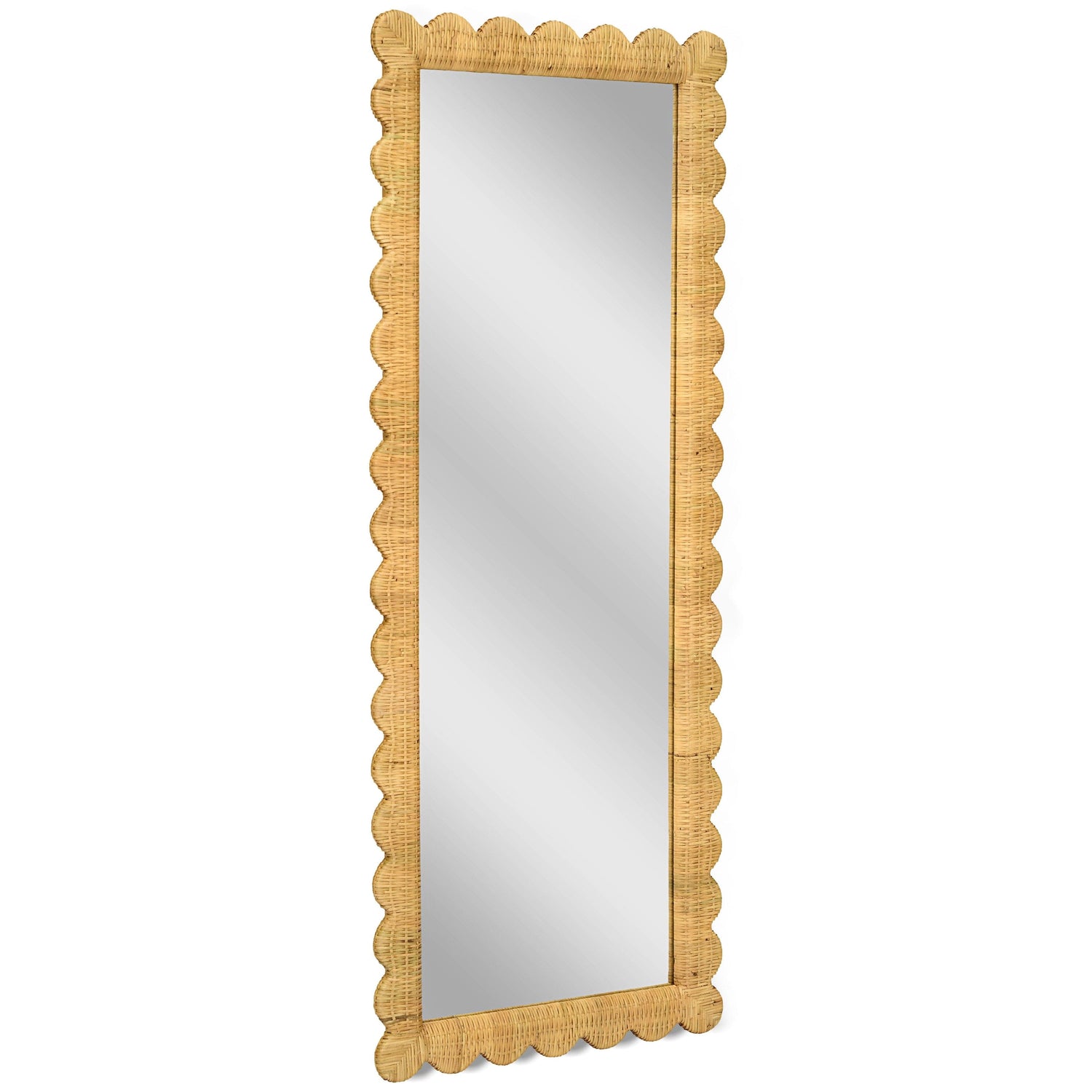 The Paula Natural Rattan Mirrors bring a touch of whimsy and craftsmanship with their scalloped wavy frames hand-woven from locally harvested rattan. This mirror adds playful texture while anchoring a room with their substantial high-quality build. Perfect for brightening entryways, bedrooms, or living spaces with coastal-inspired charm.