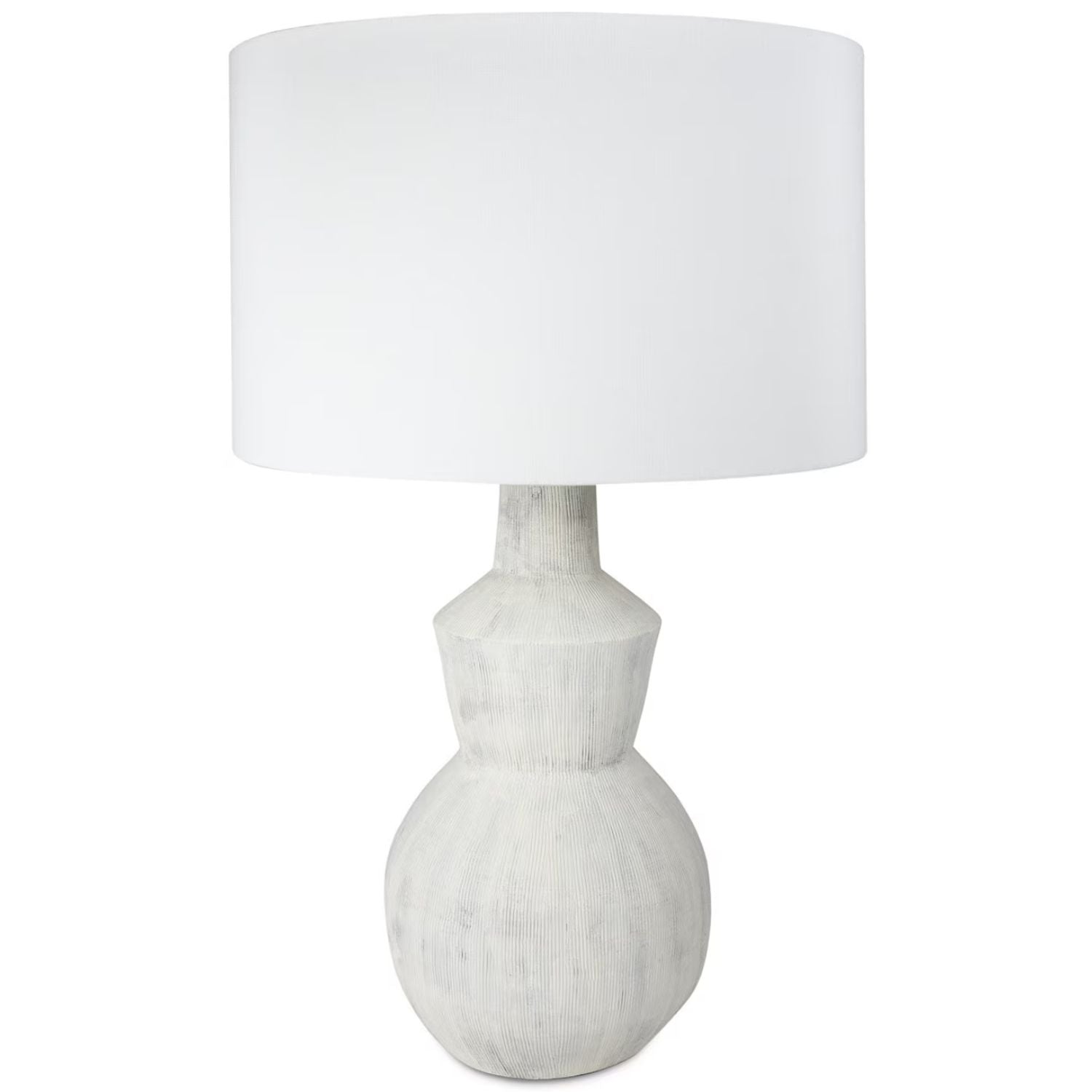 Sculpted from rich minerals like clay, sand and feldspar, the Rhonda Ceramic Table Lamp is both elemental and ephemeral. Hand finished in a matte white glaze, no two are ever the same. A natural linen shade shares a softly filtered glow. The overall effect is cool, comforting and rooted in nature.