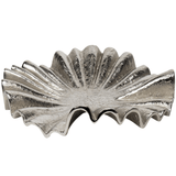 Not your grandma's lace doily. With a dramatic frill, our cast aluminum Soleil Metal Ruffle Plate adds a frisson of energy to any table. This decorative piece is finished in antiqued brass or patinated nickel that pairs beautifully with modern glass tables, warm wood and brown leather.
