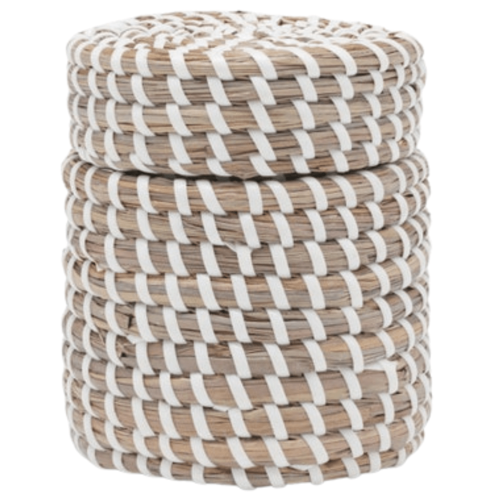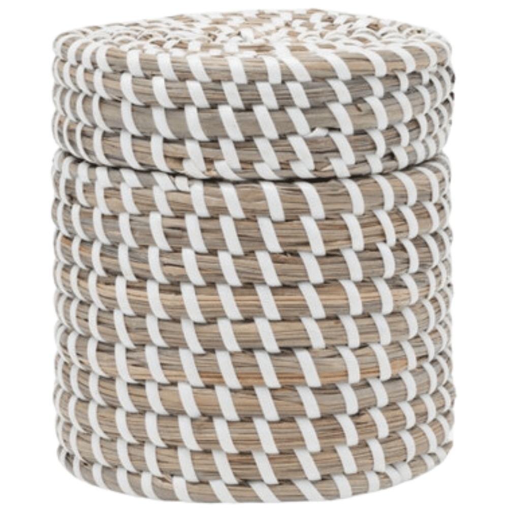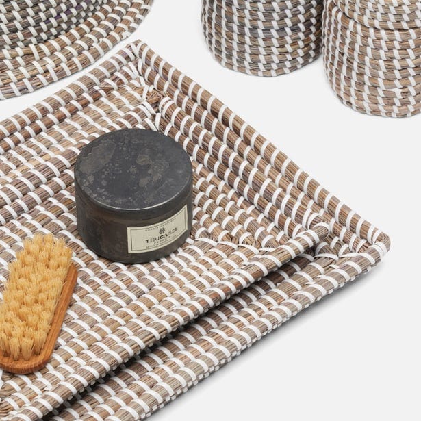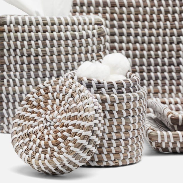 A high-contrast pattern skips across this nautical-meets-modern bath accessory collection.