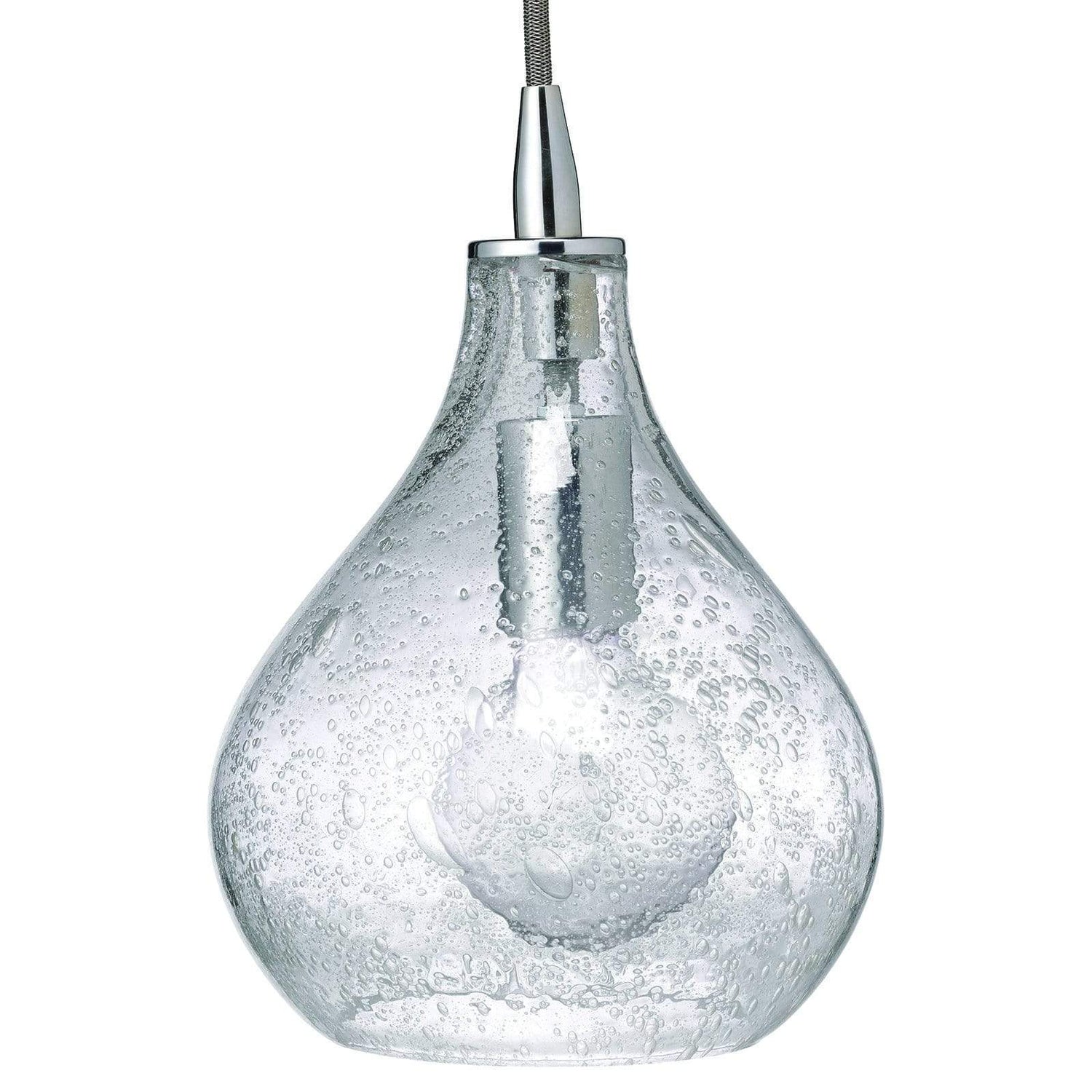 Curved Pendant with Clear Seeded Glass by Jamie Young Co. Includes 8' silver mesh cord w/ 5"d silver ceiling cap.
