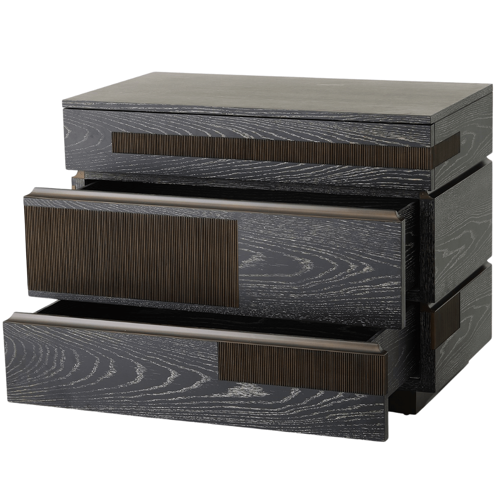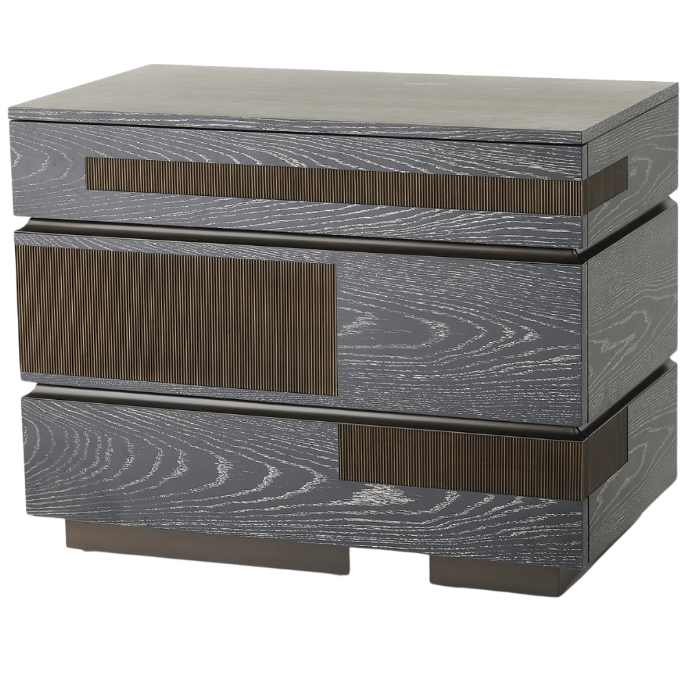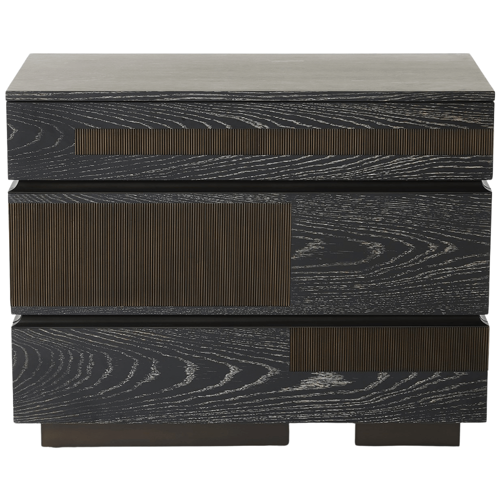 As homes and public spaces expand, The Brazil Collection by Roger Thomas for Global Views meets this trend with timeless, large-scale furnishings. Designed for luxury interiors, it evokes the romance of Brazil's name for residential and hospitality projects. This modernist collection emphasizes simplicity, highlighting robust materials and a bold scale. The complementary geometry and fine detailing create intrigue. The collection pairs dark oak, with its horizontal grain enhanced by ceruse, with vertical bronze flutes, offering a striking yet balanced contrast. Inspired by 20th-century Brazilian design, the collection captures the lyrical beauty of clear forms and honest materials.