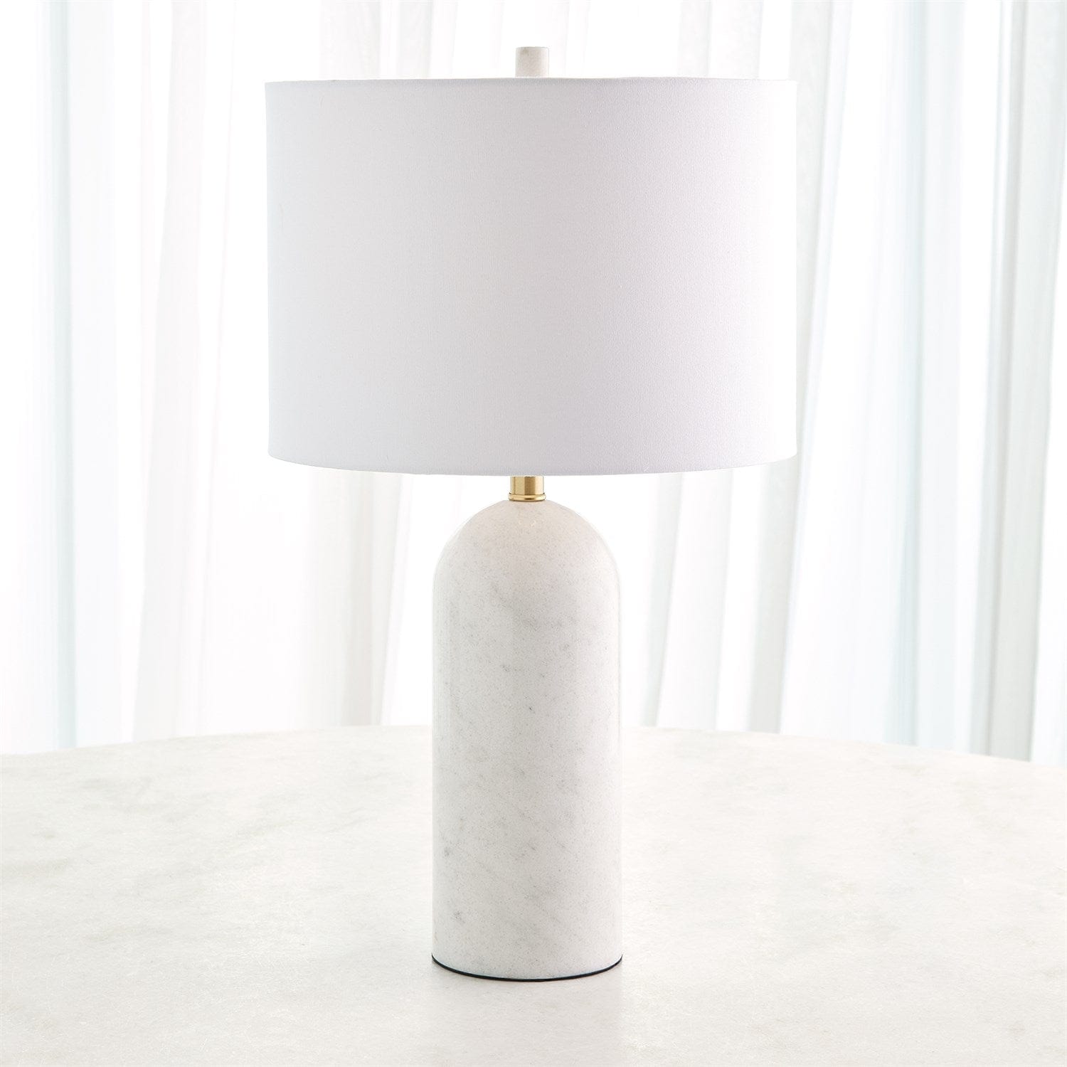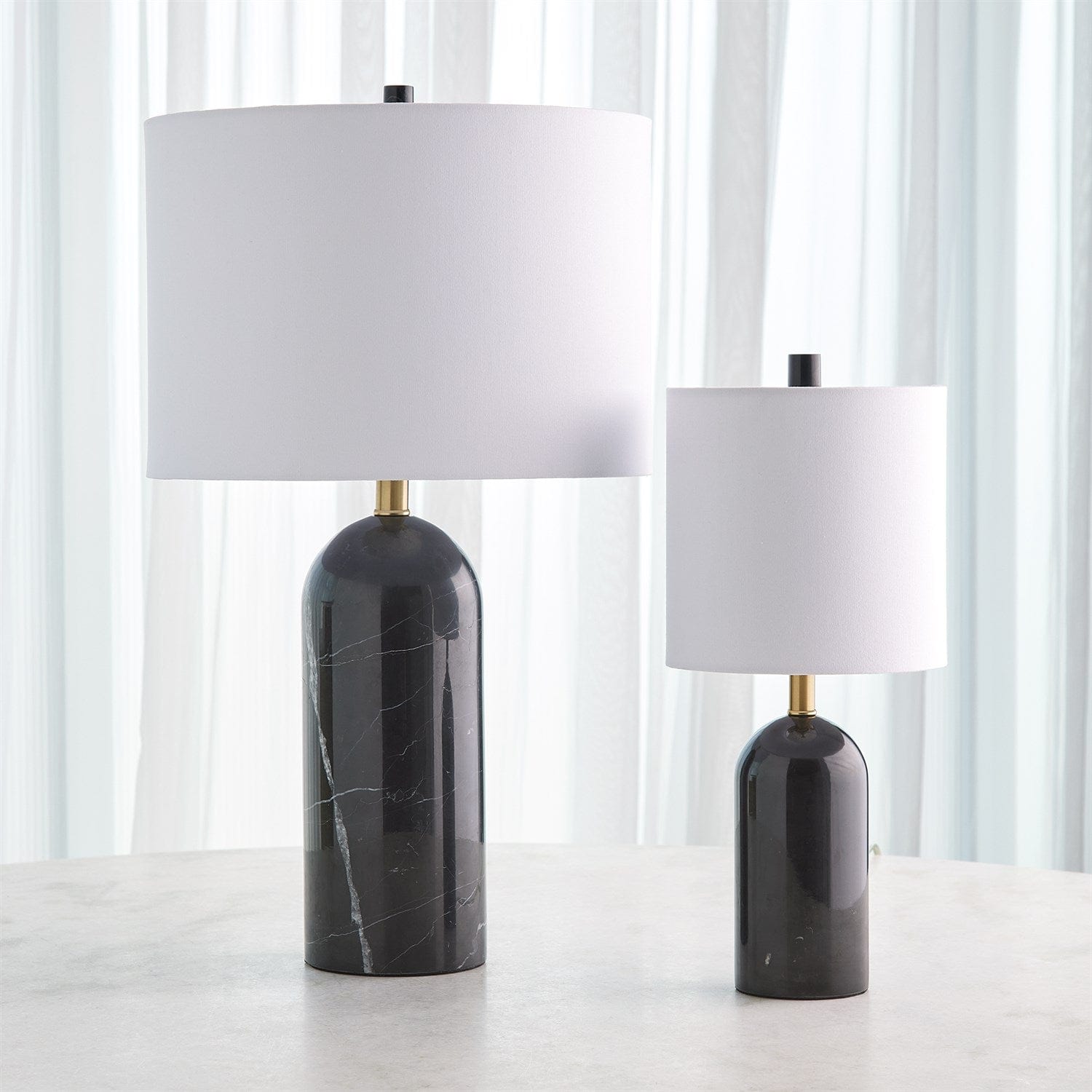 The Callanish Mirror Lamps showcase a cylindrical silhouette, carved entirely from a solid piece of marble. With elegant brass details and a hardback white linen shade, these lamps embody a sleek and sophisticated design. As marble is a natural product, please be aware that there will always be variations in veining and color. This is to be expected and makes every marble product uniquely your own.